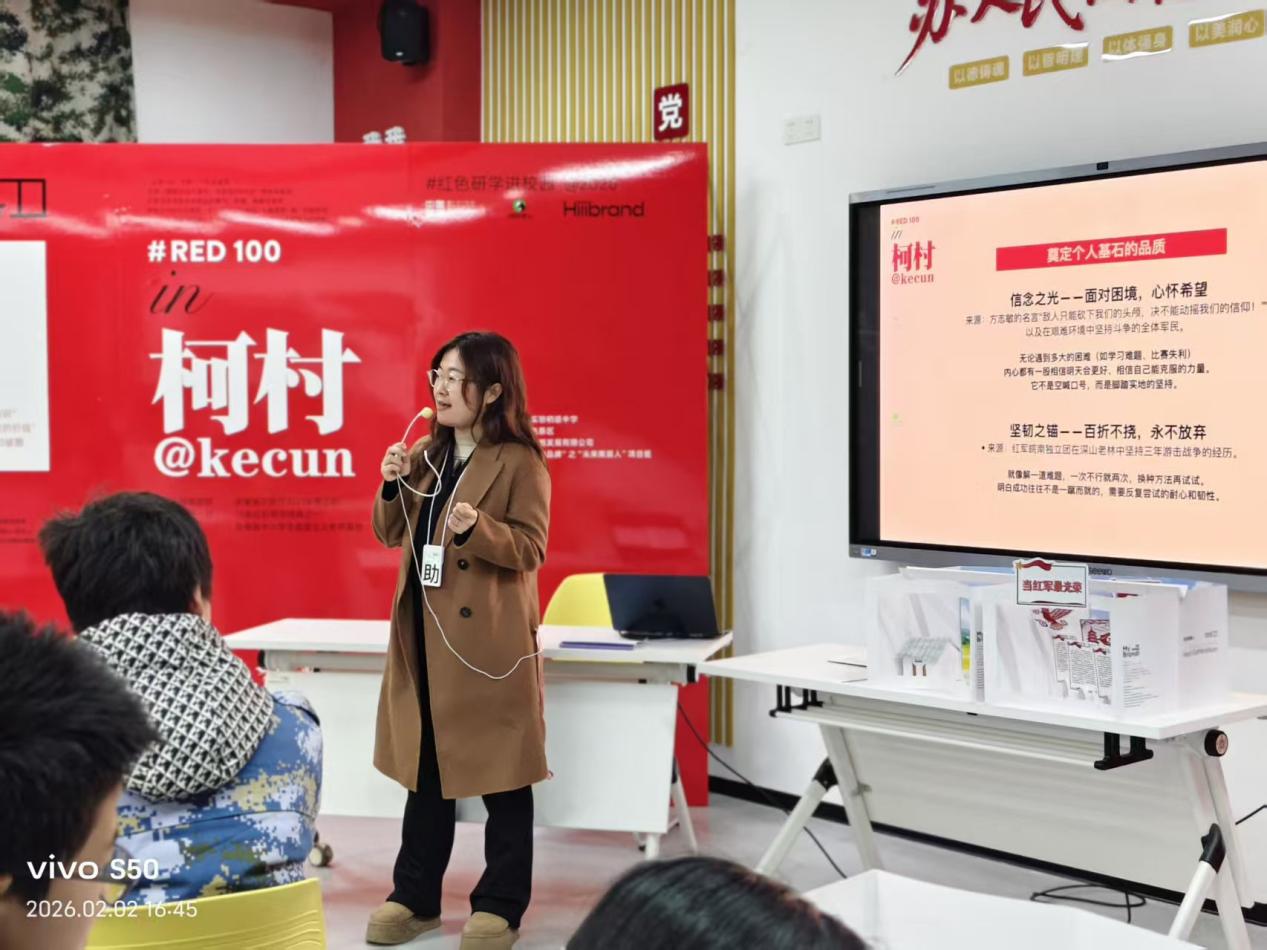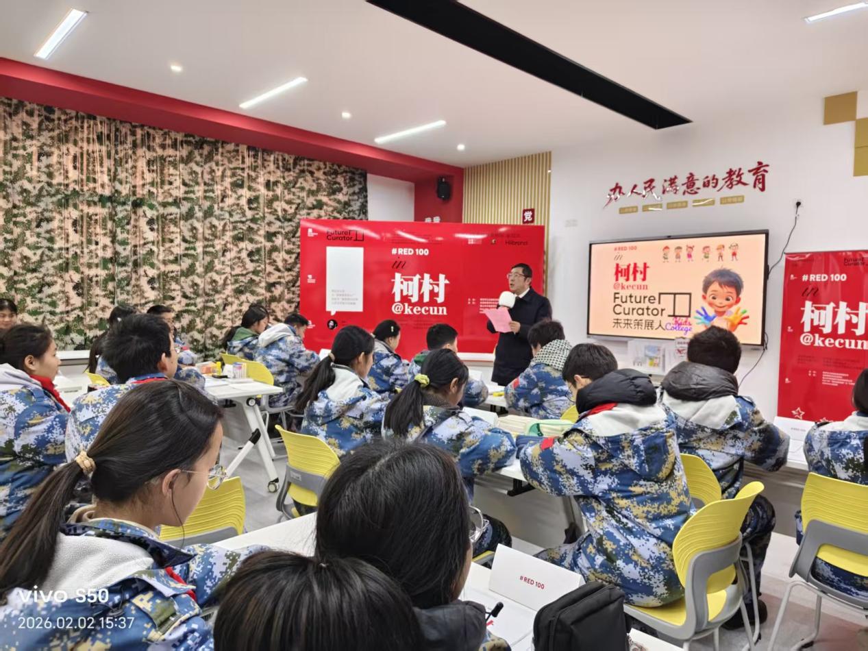本次主题活动,正是学校深度参与“Red100”红色文化创新传承项目的一次生动实践。该项目旨在通过“精神现代化、人格化”的创新方式,将厚重的红色历史转化为青少年可感知、可理解、可践行的当代价值,让红色基因真正融入青春血脉。作为“Red100”项目的重要试点,联合安徽黟县柯村红色景区、“未来策展人”项目组等多方力量精心打造。