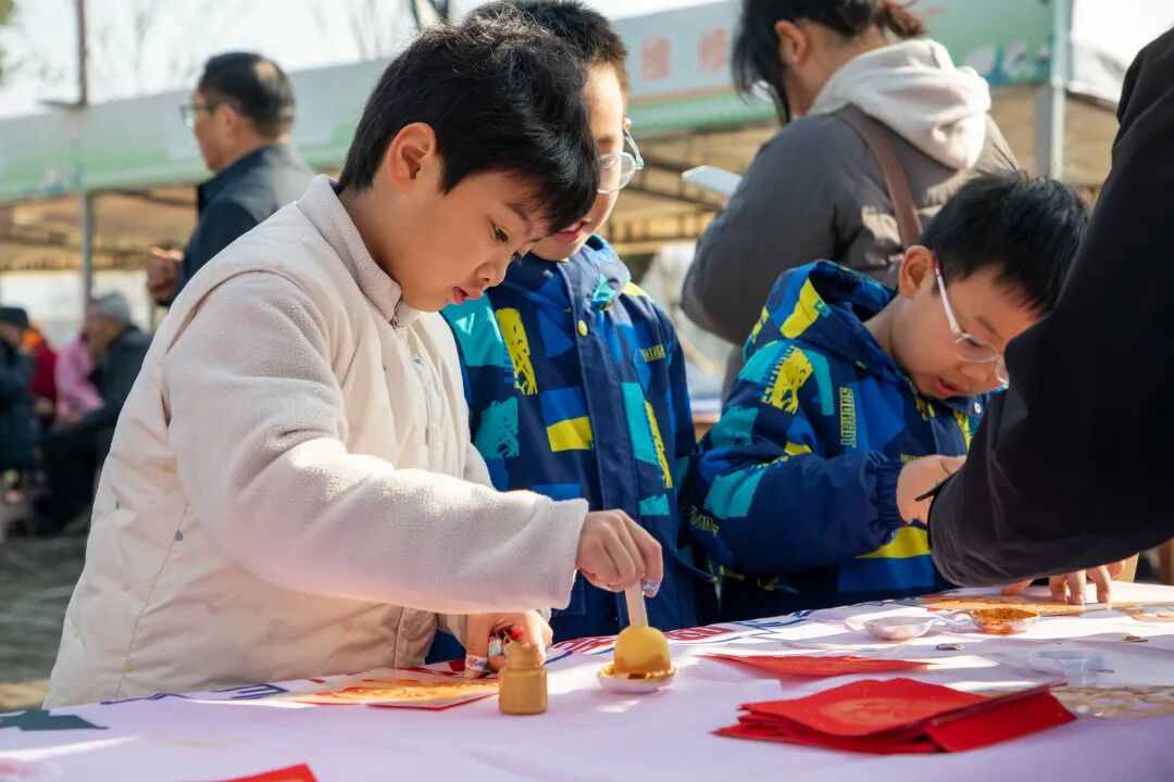 书法爱好者挥毫写春联、送祝福,非遗糖画、烙铁画等体验活动吸引众人驻足,传递着传统民俗的魅力;