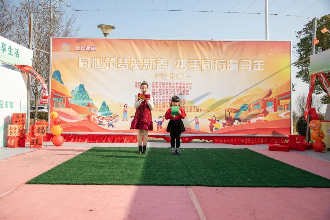 2月4日,“同心筑梦贺新春 携手同行暖马年”幸福市集暨江宁区“文化科技卫生三下乡”文明实践活动,在南京江宁街道西宁社区小微湿地公园广场温情启幕。区文明办联合区科技局、文旅局、卫健委等多部门,通过丰富多彩的文化体验与便民服务,让居民在家门口感受到浓郁的年味与社区的温暖,共迎吉祥新春。