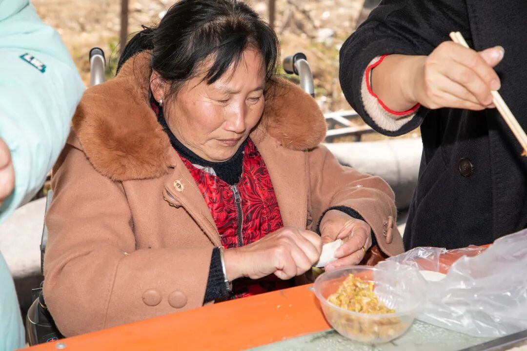大家围坐一起包饺子、品小吃,手工制作的年味食品与爱心义卖的手工艺品,共同营造出温馨互助的“家”的氛围。