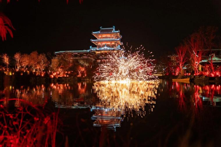 牛首山下的金陵小城年味十足,以“福潮金陵年”为主题,营造出沉浸式六朝新春幻境。白日里古巷雅致,夜晚灯火璀璨,文心馆水域灯笼摇曳,凌霄台巨型福字亮化墙点亮夜色,再现金陵古都的繁华盛景。非遗滚灯、火舞表演、非遗铁花秀等节目轮番登场,火龙踏焰、铁树银花绽放夜空,带来震撼的视觉盛宴。马年福字木版拓印、金陵金箔手作等体验活动,让游客近距离感受非遗技艺的魅力;古风NPC巡游穿梭于街巷之间,与市井烟火相融相生,勾勒出“昼赏禅韵,夜观灯火”的独特金陵年味。