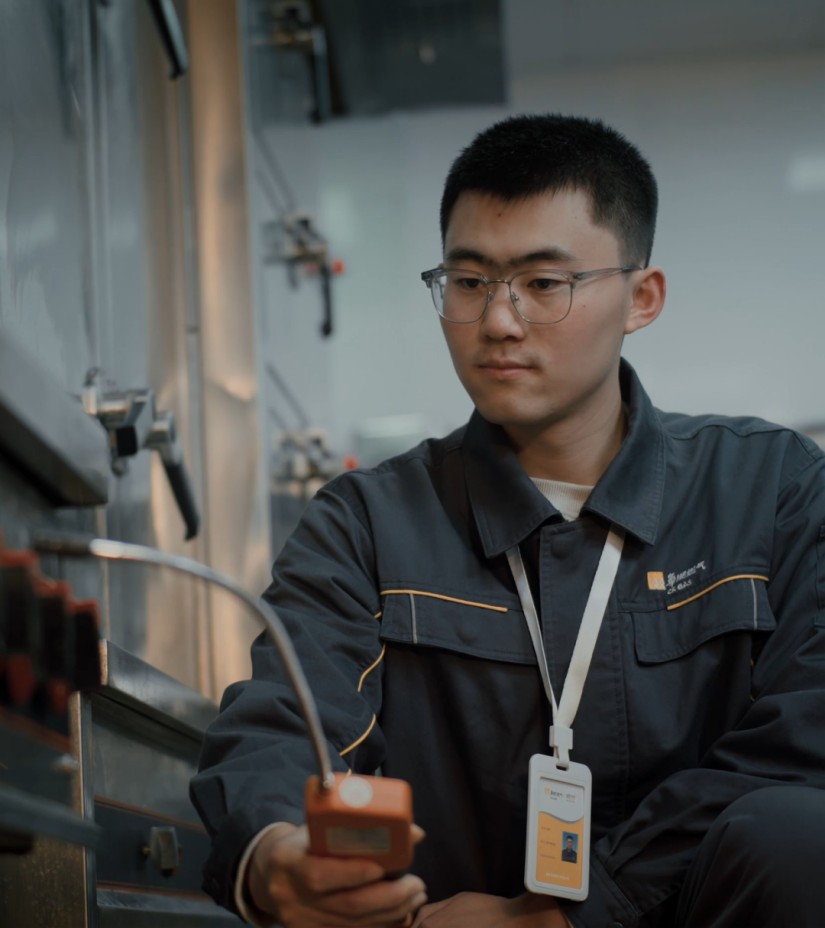 南京华润燃气有限公司燃气管家张迪正在检查商业用户燃气安全,检测燃气设施可燃气体