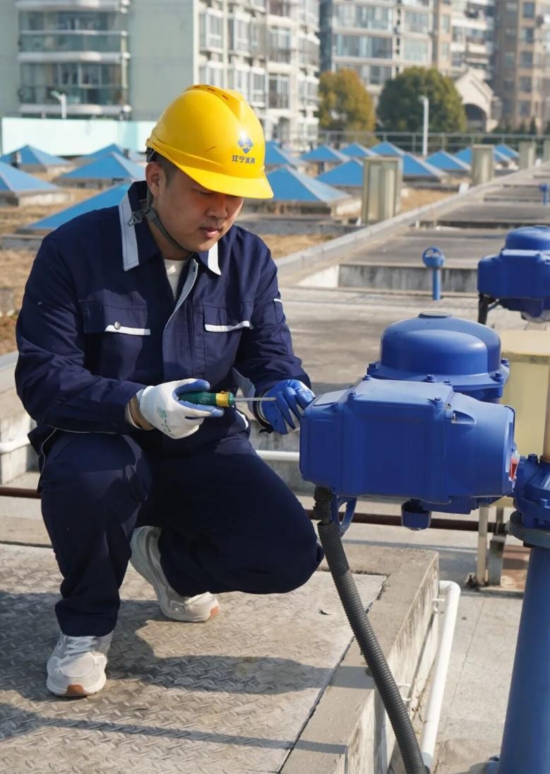江宁水务集团供水公司设备科技术员王鹏正在检修水管阀门