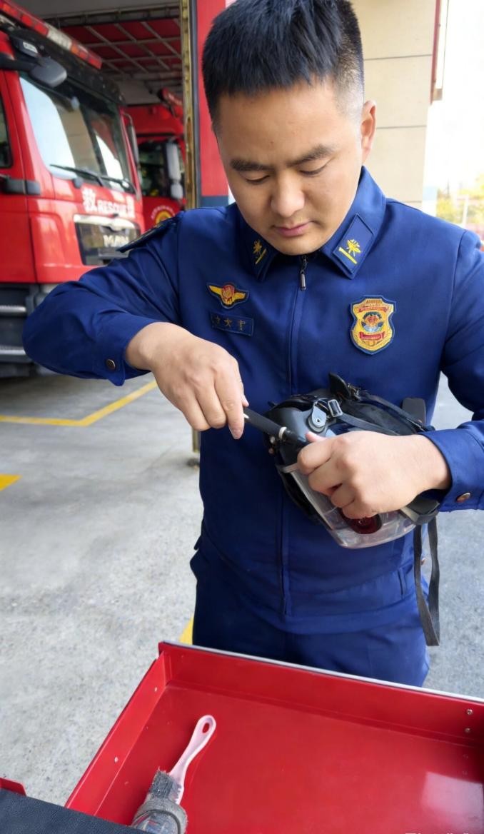 南京市江宁区消防救援大队东山消防救援站装备技师马荣安正在检查消防设备