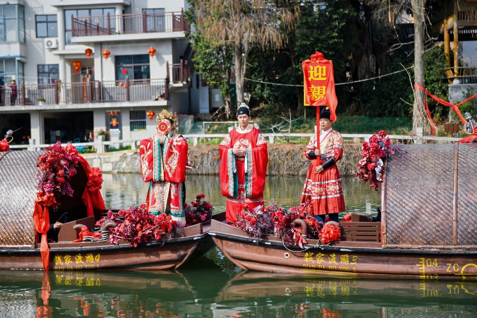 还有民俗演艺节目,也是钱家渡的传统好戏,展现水乡风采。水上婚礼浪漫温婉,再现江南水韵柔情;非遗舞龙气势昂扬,锣鼓喧天闹新春;湖熟荡湖船独具特色,原汁原味展现本土民俗风情,一场场好戏轮番上演,热闹不停。