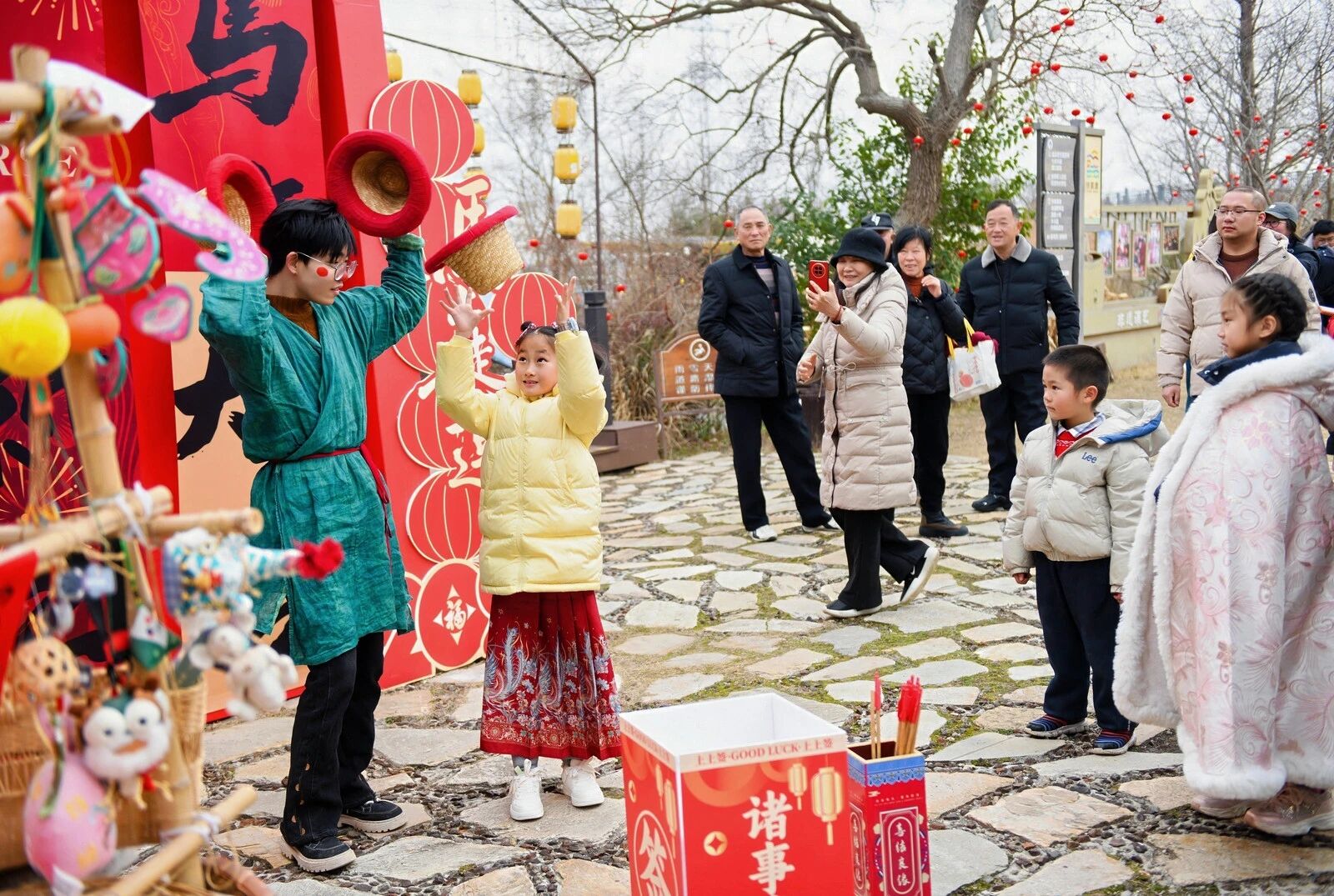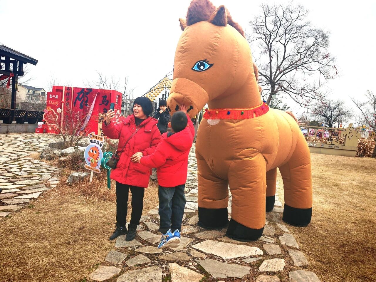 超大只马年人偶惊喜亮相,在村内悠闲游走、欢乐互动,与大小朋友亲密合影、送上新春祝福,成为新春里最吸睛的限定风景。