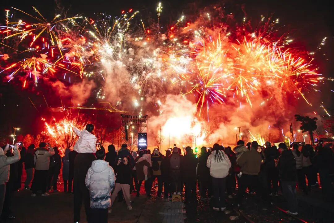 在汤山,一场场演艺轮番上演,恰到好处的热闹与欢喜驱散所有低落情绪。园博园的百米舞龙巡游气势如虹,锣鼓唢呐声里,两条长龙奔腾起舞,二龙戏珠的模样,藏着最地道的新春韵味。猿人洞里,“疯狂直立人”的主题巡演趣味十足,演员们化身史前部落族人,邀游客一起跟着鼓点起舞,在钟乳石林间感受穿越时光的快乐。待到夜幕降临,阳山碑材的鱼灯巡游蜿蜒前行,非遗打铁花如流星泼洒夜空;还有苏韵十三园的沉浸式演出,NPC藏在亭台楼阁间,一步一景一剧情。