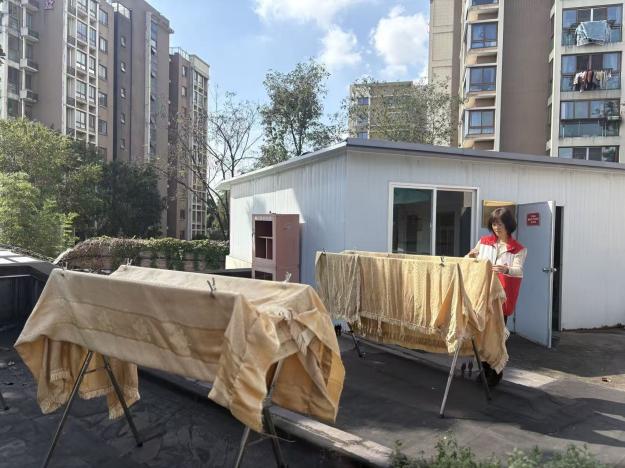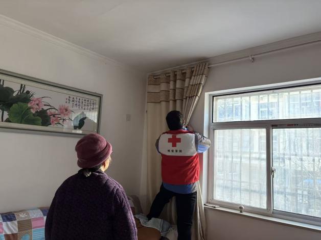 “叔叔阿姨,我们来看您啦!”伴随着一声声亲切的敲门声,社区工作人员和“拾光五坊”的志愿者们延续着腊八节以来的温暖,带着刚刚写好的对联福字,走进高龄独居老人的家中。每到一户,志愿者们都与居民亲切交谈,细致询问他们的身体状况和生活需求,并反复叮嘱老人注意防寒保暖和用电安全。与此同时,“拾·匠心坊”的便民服务队也正忙得热火朝天。考虑到家家户户都有扫尘的需求,服务队特别加强了“爱心洗衣”项目的服务力量。志愿者们主动上门,收取高龄、独居老人家中厚重难洗的窗帘,统一清洗晾晒后再完好地送回安装。一旁的理发服务也同样备受青睐,便民小屋门前早早便排起了长队。“理了发,感觉精神多了,过年更舒心了!”刚理完发的退伍老兵李爷爷对着镜子,脸上洋溢着满意的笑容。