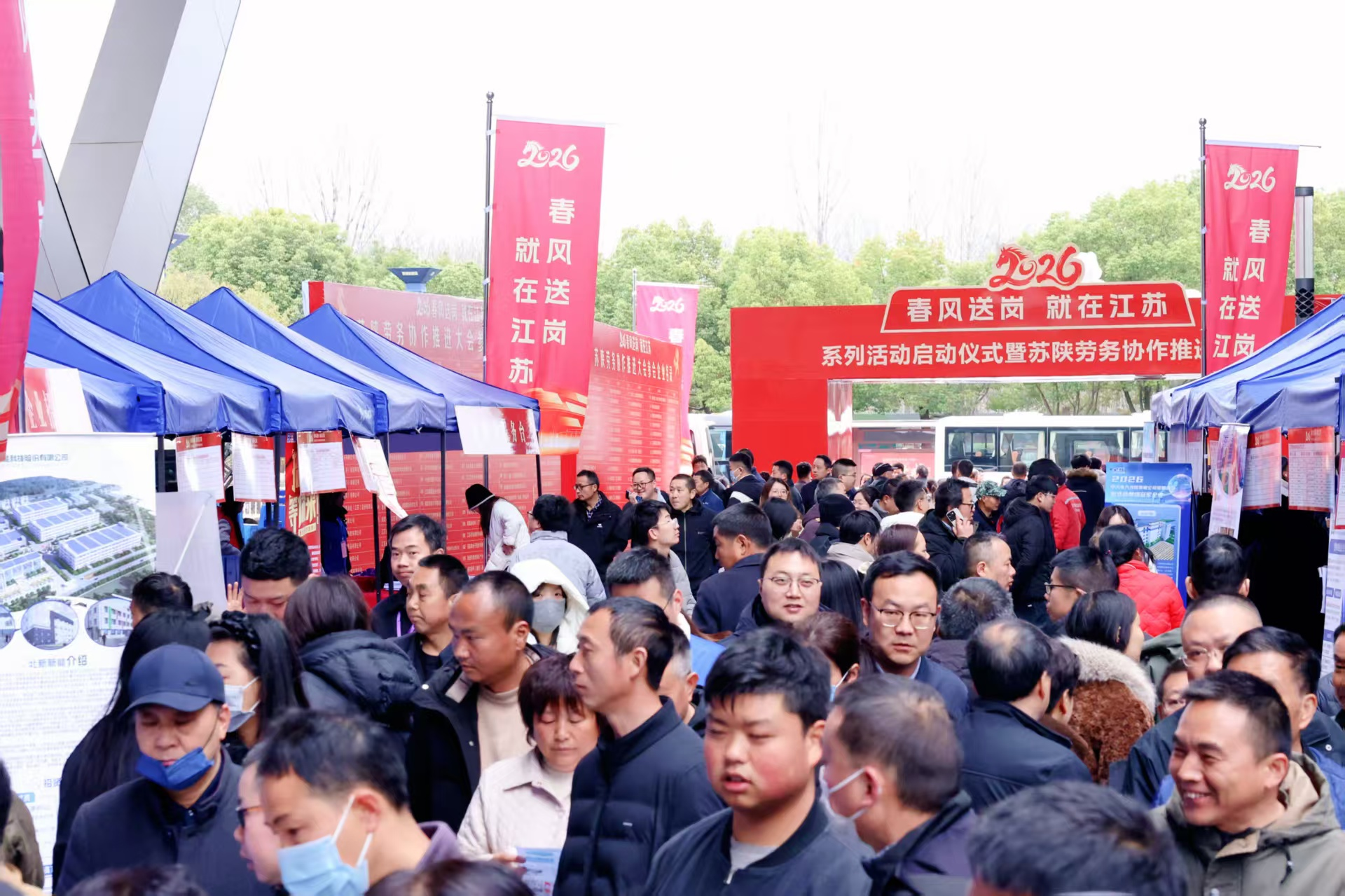 精准送岗暖民心,劳务协作搭平台。活动现场同步举行“千企万岗”现场招聘会,来自江苏13个地市的235家优质企业推出2.7万个电子信息、生物医药、高端装备制造等领域的优质岗位,集中开展政策宣介、用工对接、培训服务,为劳动者送上就在江苏新春“就业大礼包”,吸引超8000名求职者进场,初步达成就业意向超2000人。启动仪式后,举行了“春风送岗”发车仪式,首批100名陕西籍在苏务工人员搭乘专列返岗,实现从“家门口”到“厂门口”的无缝衔接。
