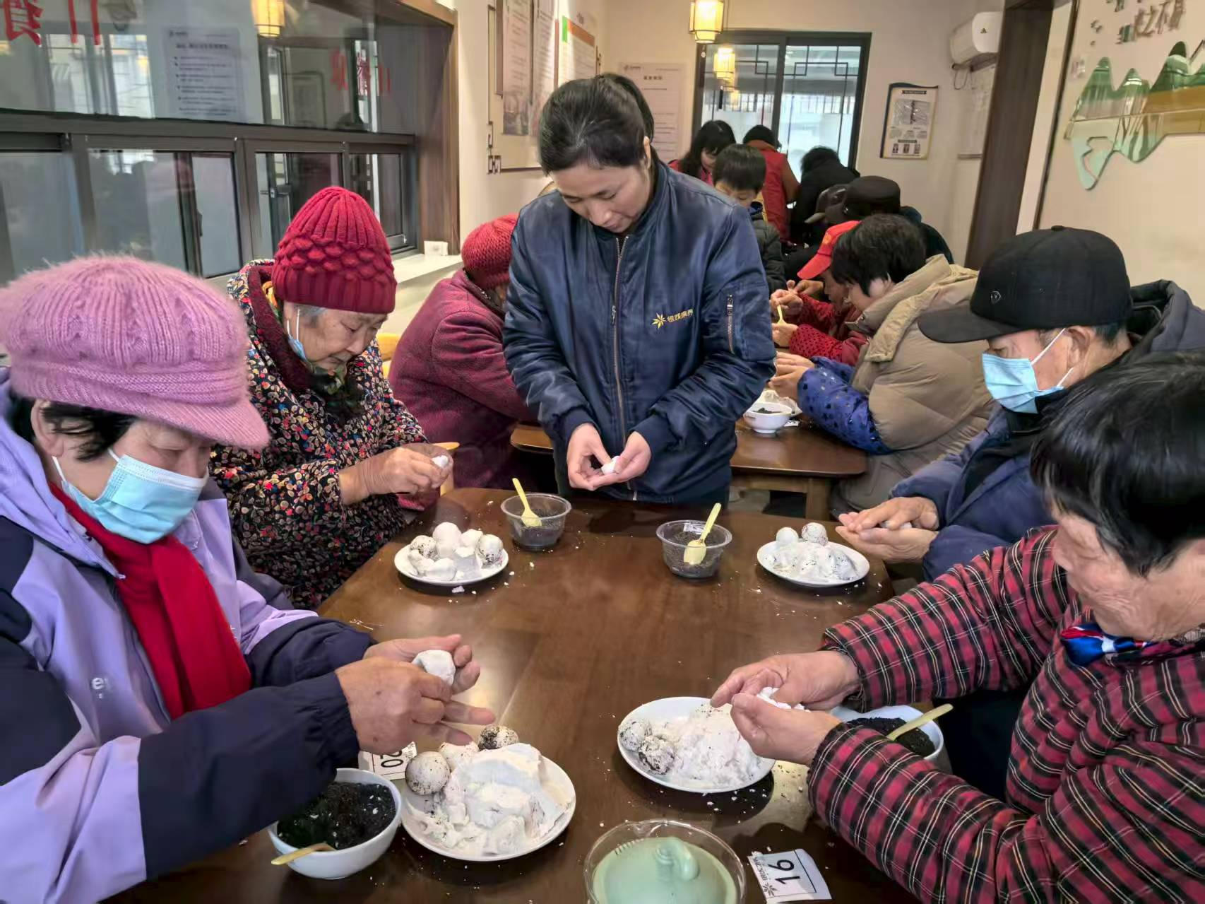 活动现场,乡邻苑工作人员提前准备了糯米粉、黑芝麻馅等材料。居民们围坐在桌旁,揉面、包馅、成型,动作娴熟流畅,不一会儿,盘子里便摆满了圆润饱满的汤圆。也有部分居民初次尝试包汤圆略显生疏,包出的汤圆大小不一、形态各异,引得大家笑语不断。大家一边交流着包汤圆的技巧,一边分享着生活中的趣事,现场气氛温馨融洽。有孩子跟在长辈身边,好奇地学着搓面团,为活动增添了几分童趣。