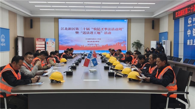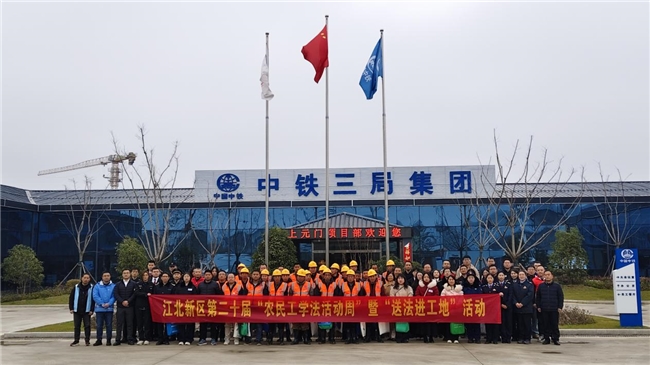 3月3日,南京江北新区政法工作部组织二十余家相关部门,赴中铁三局南京上元门过江通道站前1标项目部开展第二十届“农民工学法活动周”暨“送法进工地”活动,增强项目建设者的法律意识,提高安全防范能力,为项目高质量建设筑牢安全稳定的法治防线。