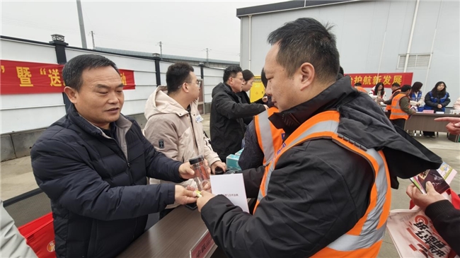 现场,二十余家单位的普法工作人员设立咨询台,为项目参建人员解答了劳动保障、卫生健康、税费政策等方面的疑问,并发放“新春大礼包”,为建设者们带来温暖与关怀。