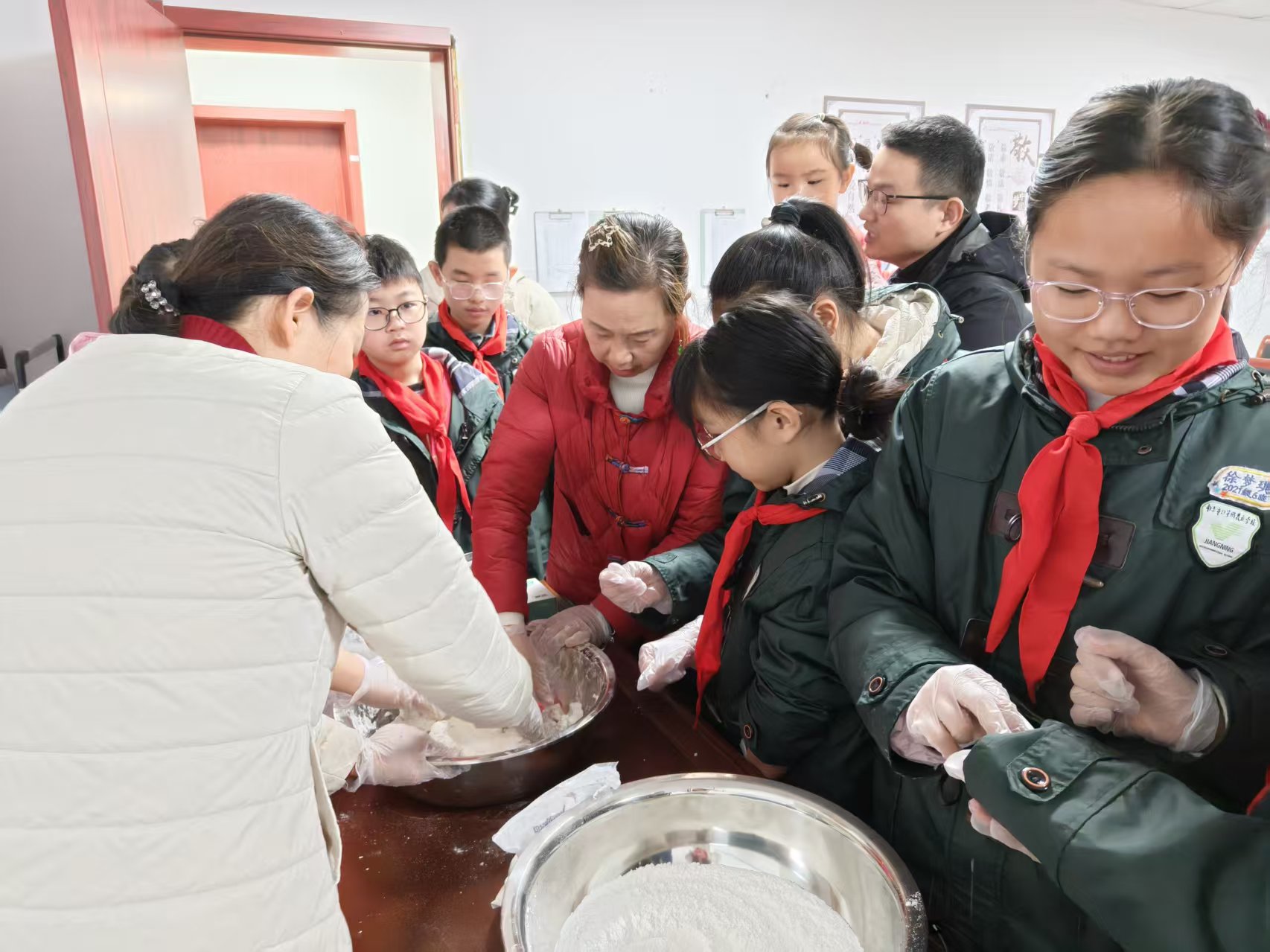 巧手传情,共筑美好。在花灯制作现场,“五老”志愿者手把手指导青少年组装灯架、粘贴花灯纸、点缀流苏,大家相互协作、创意迸发,一盏盏造型别致、色彩鲜艳的花灯在欢声笑语中逐渐成形。另一边,志愿者们耐心教学,青少年们认真学习揉面、搓元宵、包馅料,一个个圆润饱满的元宵在小手中诞生,现场弥漫着糯米与甜蜜馅料的清香。