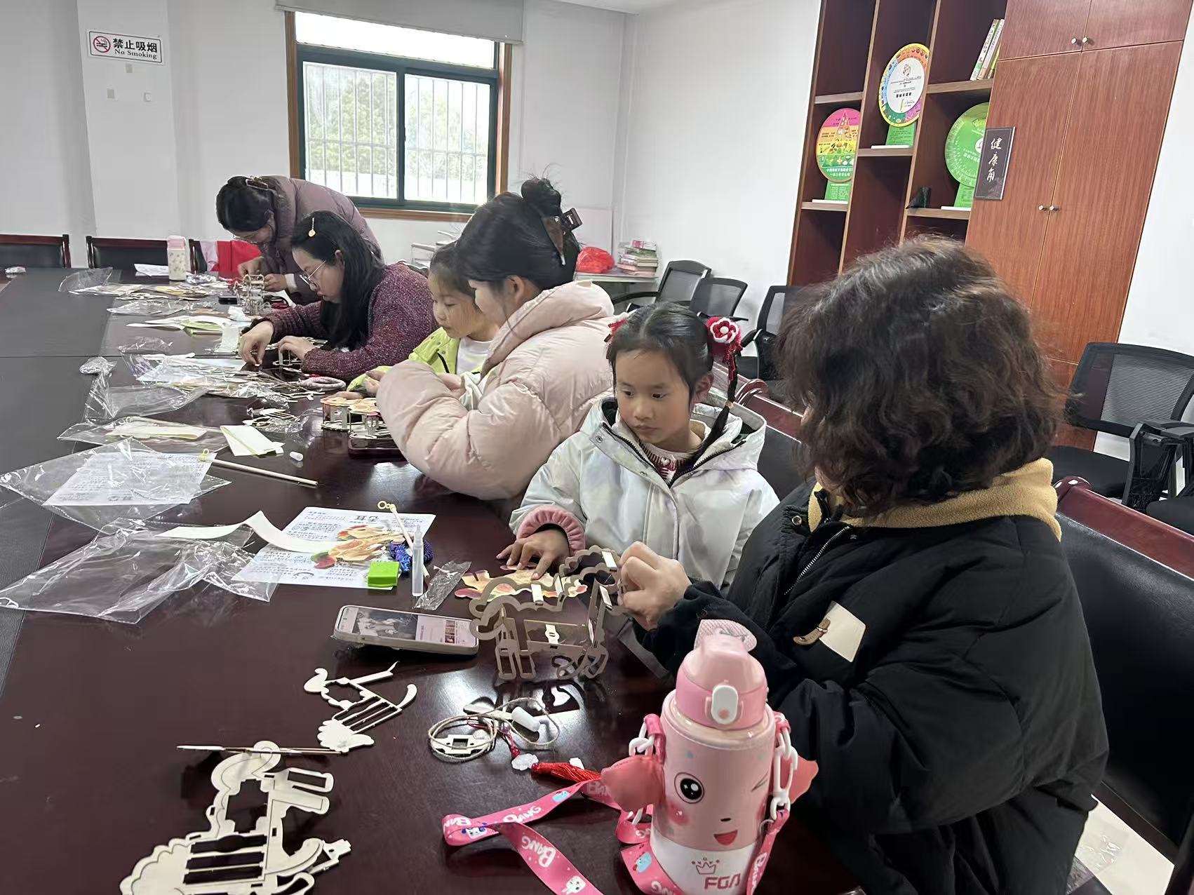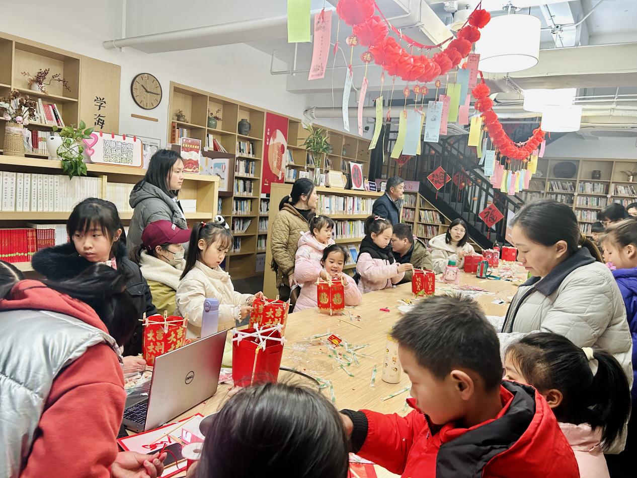 在秣陵,团圆的味道不止于舌尖,更流淌在指尖。童前社区的活动室里,一场“变废为宝做花灯”活动正热闹开场。家长带着孩子们围坐桌前,将平日里不起眼的筷子搭成方形灯架,再用彩纸糊面、贴花,寻常物件在巧思中焕发新生;牛首社区则把目光投向老年与残障居民,用心守护每一个人的节日期待。志愿者们俯身倾听、轻声鼓励,耐心细致地讲解手工灯的制作步骤,手把手协助拼接、粘贴、装饰。每一次折叠,每一次粘贴,都充满了陪伴的温度。