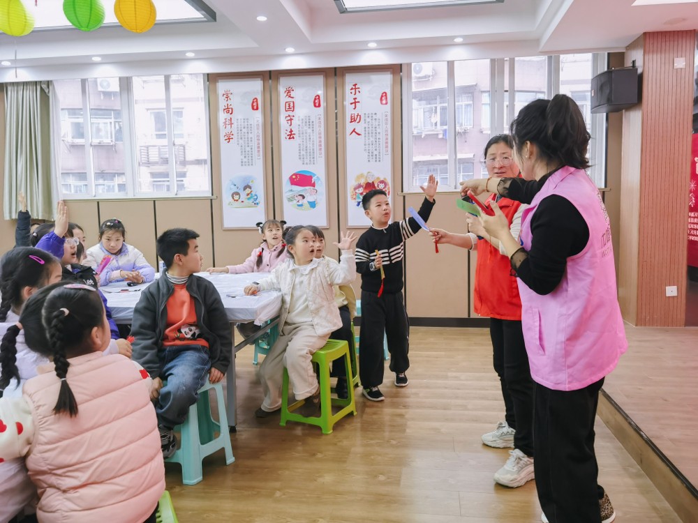 猜灯谜,是元宵节最富趣味的“头脑风暴”。在秣陵,“幸福课堂”将这一传统习俗玩出了新意。秦淮社区里,党员志愿者与孩子们围坐一堂,志愿者不仅娓娓讲述元宵节的由来与传统习俗,更带领孩子们现场猜起了灯谜。一条条妙趣横生的谜面,引得孩子们或托腮沉思,或争先抢答,传统文化的种子在欢声笑语中悄然播撒;而在童前社区,志愿者巧妙地将移风易俗内容融入谜题——“高价彩礼不可取”“丧事简办不铺张”……抽象的理念化作有趣的谜面,居民们在思索与揭晓间,不知不觉将文明新风记在了心间。