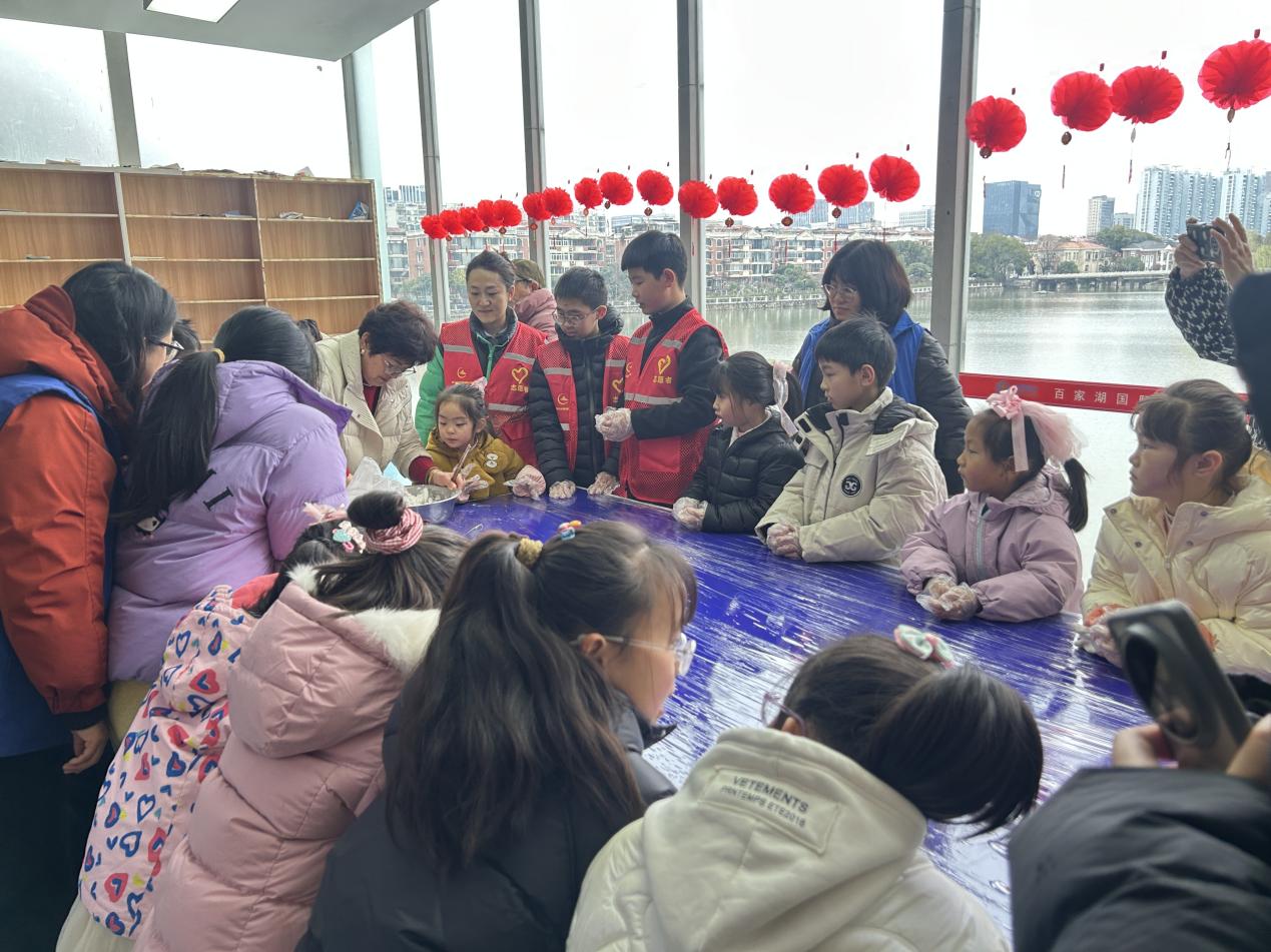 元宵佳节,最抚凡人心的莫过于一碗热气腾腾的汤圆。在凤凰村,村民们围坐一桌,揉面团、包馅料、搓圆成型,动作娴熟而默契。经验丰富的老人手把手教年轻人,笑语间,一颗颗圆润的汤圆渐渐堆满了盘。这不仅是手艺的传递,更是邻里温情的流动;湖滨社区的孩子们则化身为“暖心小使者”,在志愿者的带领下,将象征着团圆和温暖的元宵送到社区高龄老人手中,也递给了正在街头忙碌的环卫工人,让这个节日多了一份柔软的温度;而在火炬村,汤圆有了更“多彩”的表达。志愿者以趣味讲解拉开序幕,向孩子们讲述汤圆的历史渊源,还科普了如何用天然果蔬调色。孩子们睁大眼睛,跃跃欲试,小手搓出粉的、绿的、黄的小汤圆,化身“小小美食家”,与家长和伙伴分享自己的创意成果。