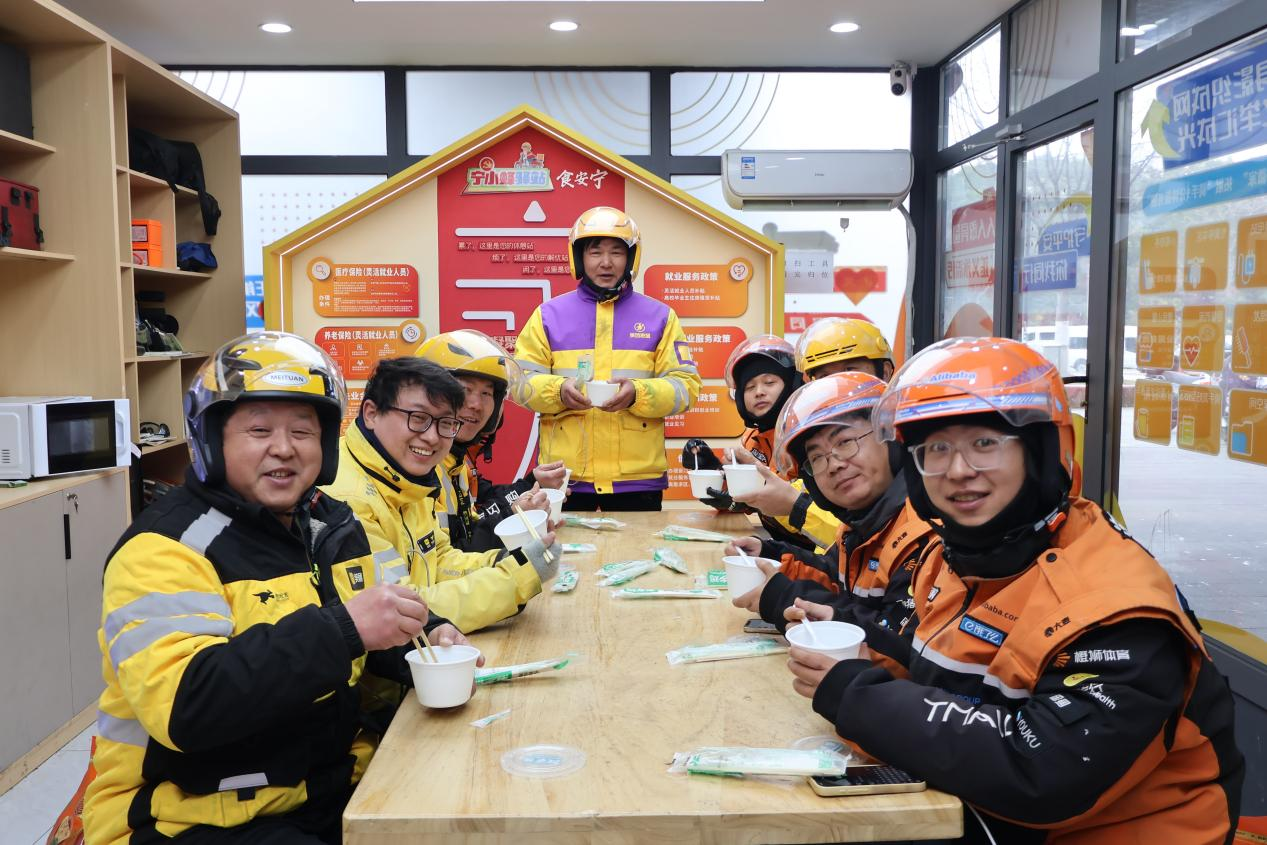 “冷了能取暖、累了能歇脚、渴了能喝水、难了能求助”,作为江北新区服务外卖配送群体的重要阵地,“小北・骑手微家”自建设以来,始终聚焦外卖骑手的工作生活需求,提供休息、饮水、充电、热饭、阅读等“5+X”服务,并建成“宁小蜂·食安宁”主体驿站,推动“小哥憩亭”“暖新食堂”“暖心药店”等12项综合服务功能落地,成为凝聚外卖配送群体、推动基层治理的重要平台。