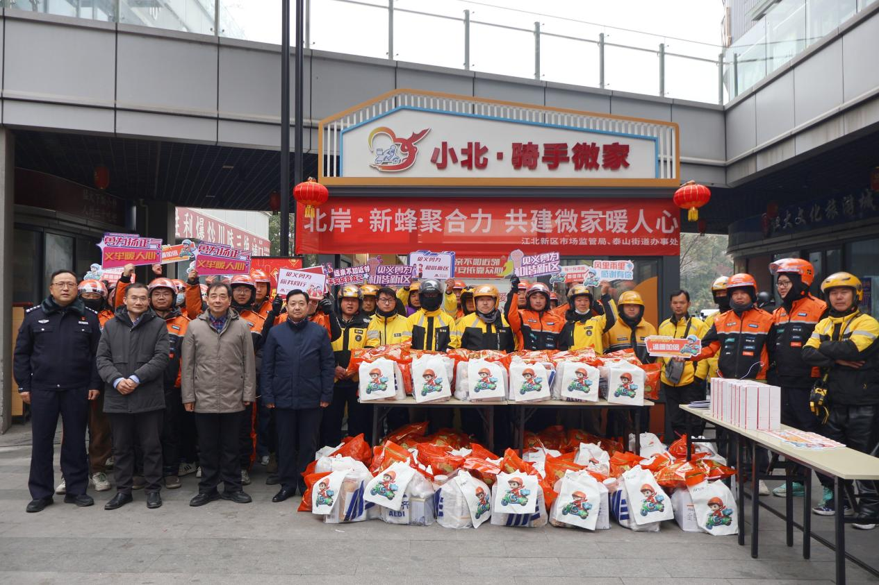 骑手专属宠爱已暖心送达!3月3日元宵佳节,南京江北新区泰山街道弘阳时代中心“小北・骑手微家”暖意融融,一场以“‘新蜂’送暖 聚力元宵”为主题的外卖配送群体关爱活动温情启幕。活动由江北新区市场监管局主办,新区党群工作部、公安分局见义勇为基金会、泰山街道等多方联动协办,把节日祝福与贴心服务送到外卖骑手身边,让城市“摆渡人”真切感受到家的温暖与归属。