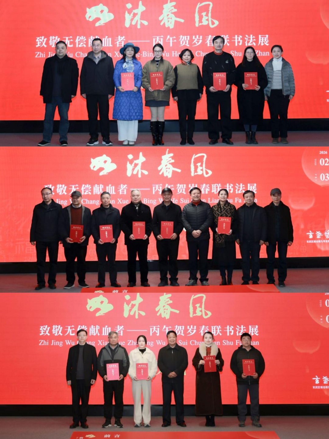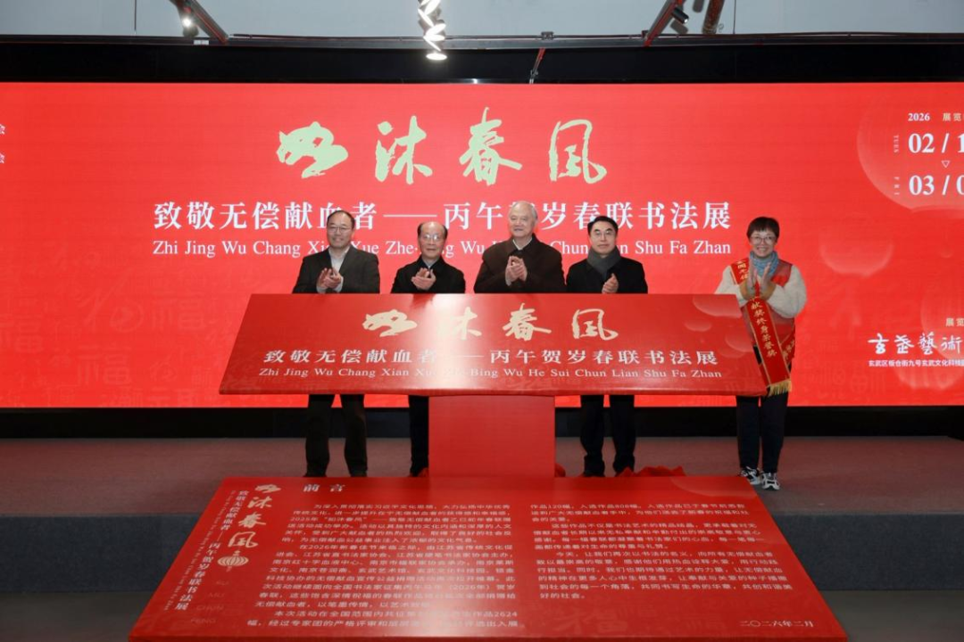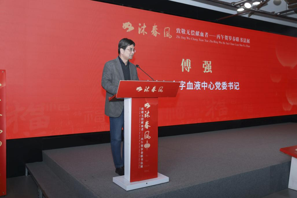 活动最后,相关领导和献血者代表共同为“如沐春风·致敬无偿献血者”丙午贺岁春联书法展揭幕。