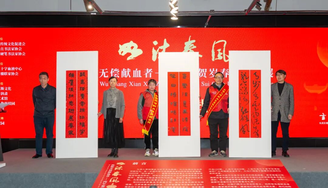 为深入贯彻落实习近平文化思想,大力弘扬中华优秀传统文化,进一步提升无偿献血者的获得感和幸福感,由江苏省传统文化促进会、江苏省直书法家协会、江苏省硬笔书法家协会主办,南京红十字血液中心、南京市楹联家协会承办,南京莱斯文化、南京苍润斋、玄武艺术馆、玄武文化科技园、锁金科技协办的“如沐春风”致敬无偿献血者春联公益捐赠活动于3月3日在玄武艺术馆成功举办。