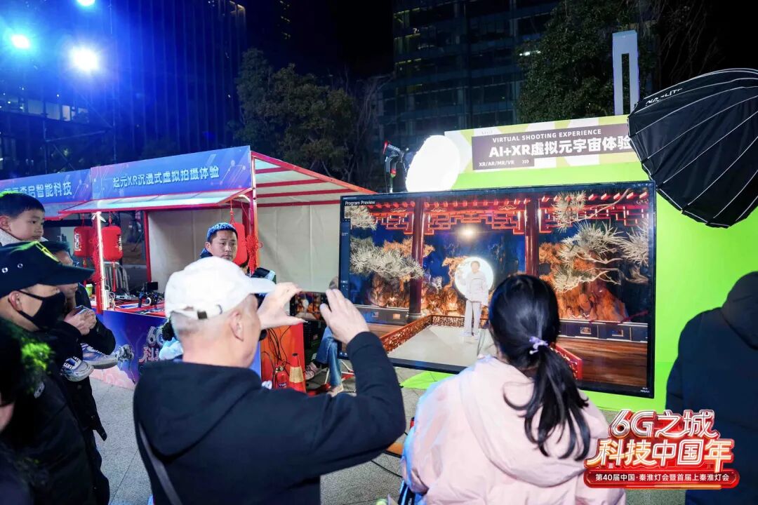 一方绿幕,一台设备,走上前就能置身流光溢彩、美轮美奂的灯会现场,在定制故事里留下独一无二的影像记忆。在位于南京江宁的上秦淮灯会现场,广大游客沉浸式体验了一键入“画”。