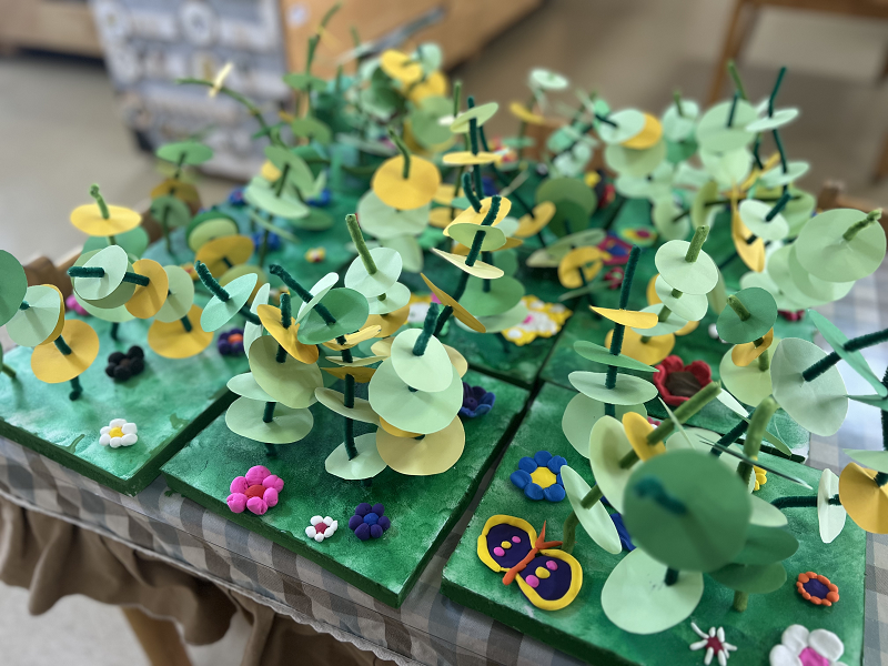 活动伊始,社区工作人员以趣味形式向孩子们讲解了植树节的由来、树木的生态价值等知识,帮助他们建立对绿植保护的初步认知。随后,在志愿者的引导下,孩子们利用扭扭棒、泡沫板、彩纸、黏土等安全材料,发挥想象力,创作迷你绿色树林。每一件充满童趣的作品,都凝聚着孩子们对自然的热爱,也让环保意识在潜移默化中得到强化。