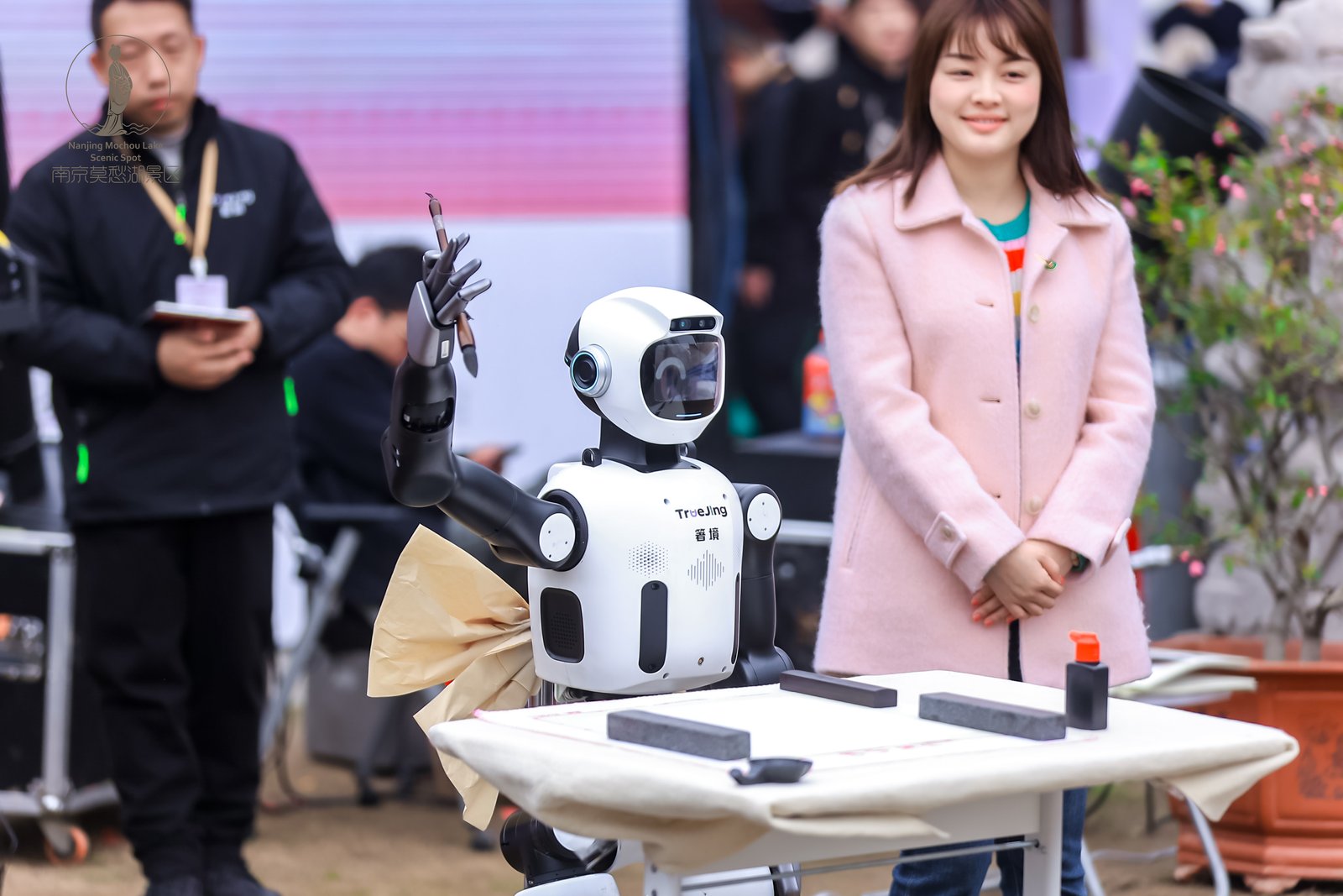 在传统之外,本届花会引入多项创新体验。AI机器人化身导览员、书法家,现场赠送海棠胸针、即兴创作书法作品,让科技与游园深度结合,展现建邺以科技创新引领城市发展的活力。