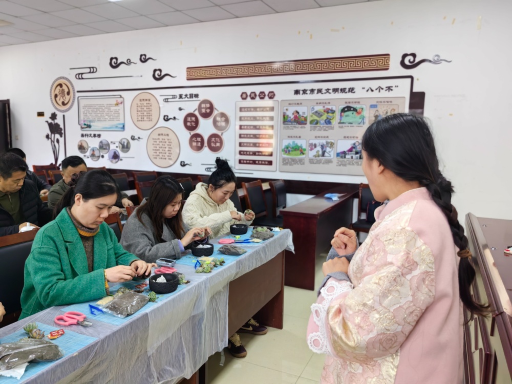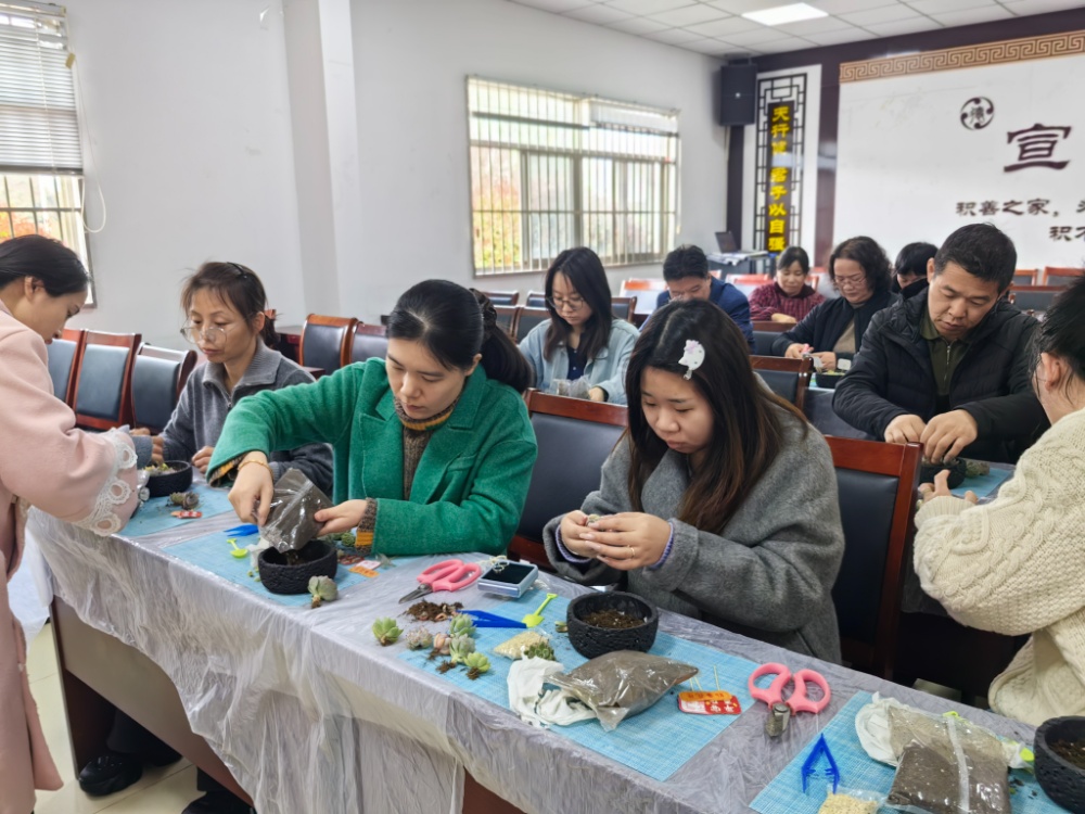 3 月 25 日,南京市江心洲街道洲泰社区在社区活动室举办“江州春半分,绿意指尖生”多肉植物盆景 DIY活动,吸引辖区20位居民热情参与,大家在盎然春意中,共赴一场温馨的绿色之约。