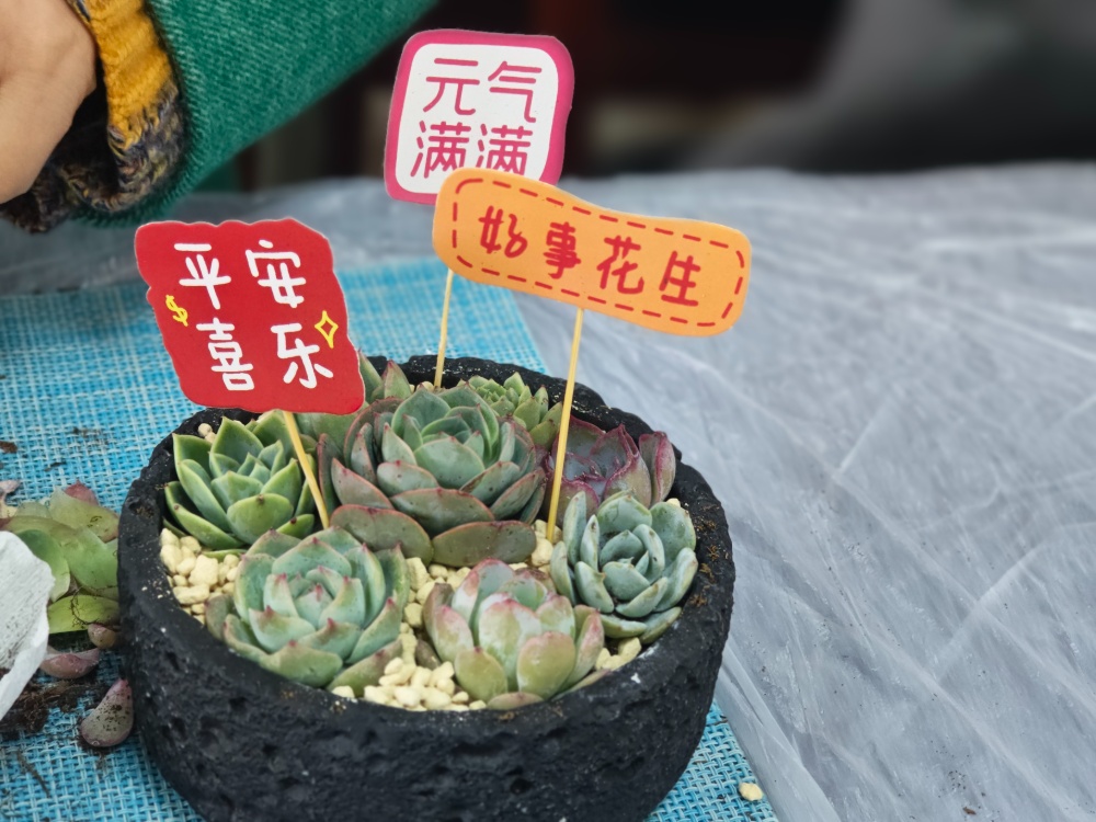 经过一个多小时的精心制作,一盆盆错落有致、生机盎然的多肉盆景在居民指尖“诞生”。看着亲手打造的“迷你花园”,每个人脸上都洋溢着满足与喜悦。居民李阿姨捧着作品开心地说:“这个活动太有意思了!春分种绿,寓意特别好。把这盆绿色带回家,既能美化环境,也让我更加懂得要爱护自然、珍惜绿色。”