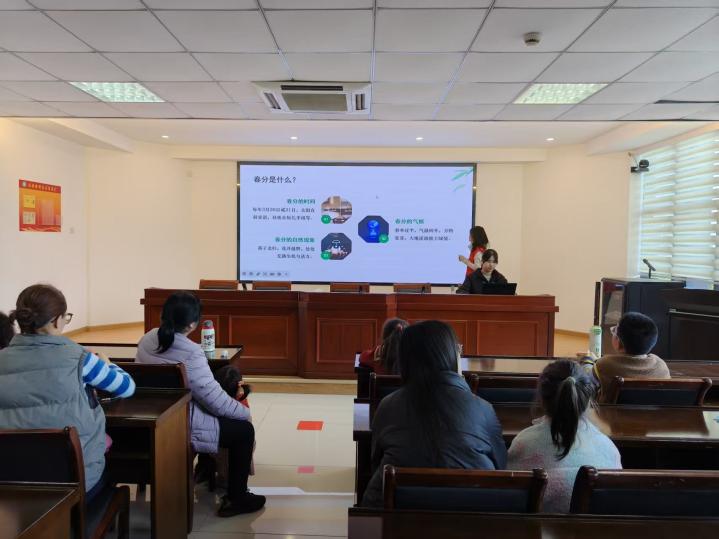 活动伊始,工作人员以生动有趣的方式,为到场居民讲解春分节气的相关知识。从节气由来入手,详细介绍了春分“昼夜平分、季节平分”的天文特点,引用《月令七十二候集解》中“二月中,分者半也,此当九十日之半,故谓之分”的记载,让大家知晓春分是春季九十天的中分点。同时,科普了春分三候“一候玄鸟至,二候雷乃发声,三候始电”的自然规律,以及春分时节立蛋、踏青、祭日等传统民俗,居民们认真聆听,积极互动提问,在轻松的氛围中汲取传统文化知识,对春分节气有了更全面、深刻的认知。