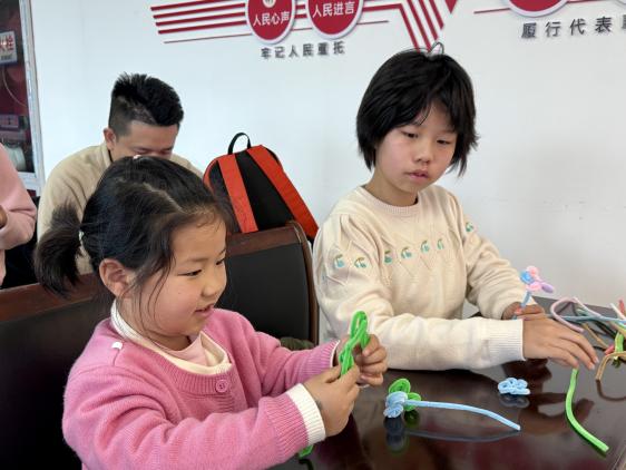 知识科普过后,趣味满满的手工创作环节正式拉开帷幕。首先进行的是扭扭棒春日花朵制作,工作人员提前准备了色彩缤纷的扭扭棒、剪刀、花艺胶带等材料,工作人员现场示范花朵的制作步骤,耐心讲解扭、绕、粘等技巧。居民们兴致勃勃,纷纷动手尝试,指尖翻飞间,一根根普通的扭扭棒化作一朵朵娇艳的郁金香、灵动的小雏菊、烂漫的迎春花,大家互相交流心得、互帮互助,现场欢声笑语不断,一朵朵形态各异、色彩鲜亮的春日花朵,承载着大家对春天的喜爱与期许。