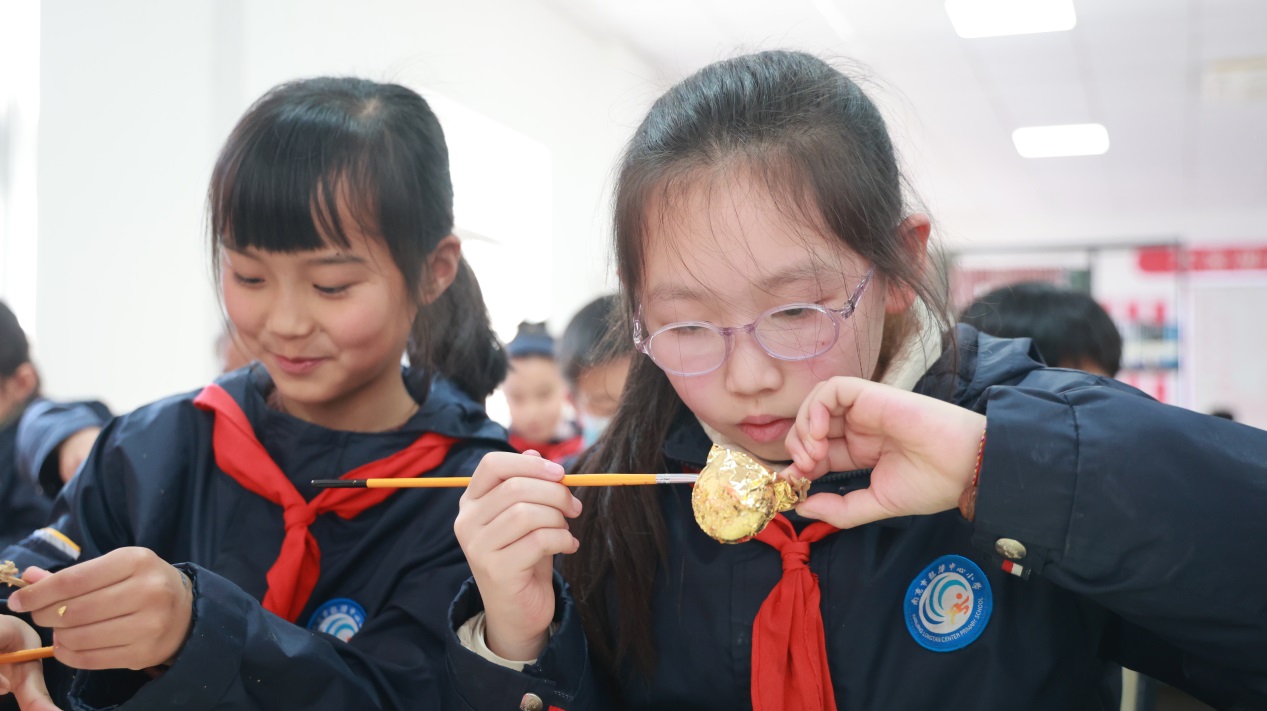 此次研学是龙潭中心小学金箔特色美术课程的校外延伸,既深化了校企社合作成果,又让学生在非遗体验中提升了审美感知与艺术创作能力,让工匠精神与中华优秀传统文化根植于童心,进一步擦亮了学校“金箔美育”的特色品牌。同时,作为非遗传承的重要实践,此次活动也让孩子们直观领略了南京金箔锻制技艺的精湛与神奇,在他们心中种下了非遗传承的种子。未来,校企社三方将持续深化非遗研学活动,搭建更多文化交流平台,让更多青少年走进非遗、了解非遗、爱上非遗,以青春之力守护千年匠心,让南京金箔这一文化瑰宝在新时代绽放更加璀璨的光彩。