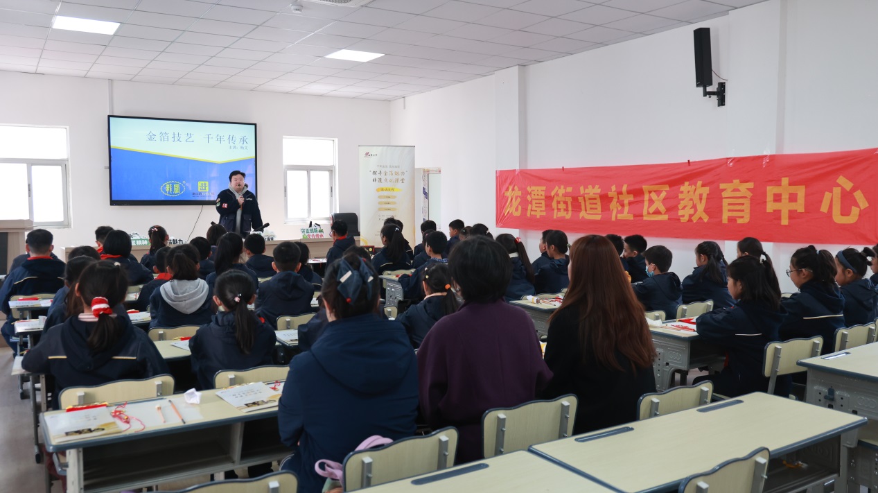 为推进金箔特色美育建设,深化校企社合作,3月25日下午,由南京市栖霞区社科联、龙潭街道龙潭街社区、南京金线金箔总厂、龙潭街道社区教育中心联合举办的“行走的美育课堂”研学活动正式开展,来自龙潭中心小学的四十余名师生走进南京金线金箔总厂,沉浸式感受传统非遗技艺魅力。