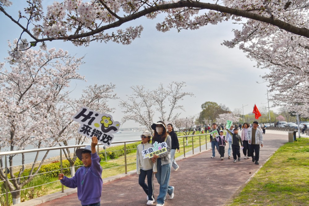 樱花与漫步相融,解锁春假“松弛时光”。上午9时,随着石化村社区党委书记、居民委员会主任奚靓一声“出发”,活动正式拉开帷幕。春日里的樱花缀枝绽放,江岸风光如诗如画,参与居民兴致高昂、结伴而行,或用镜头定格春日盛景,或漫步闲谈、畅谈家常,尽情享受春假带来的松弛与惬意。活动中,社区精心设置樱花知识介绍环节,工作人员现场开展生动细致的讲解,让居民在徒步赏景的过程中,既感受自然之美,又学习樱花知识,实现休闲与求知的双向收获。1公里的徒步路线上,邻里相伴、笑语盈盈,真挚情谊在春日暖阳中悄然升温,勾勒出一幅春假里邻里和谐、共建幸福家园的美好画卷。