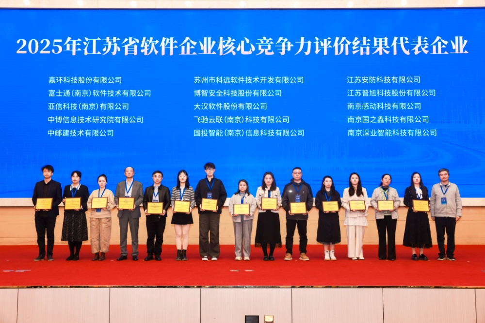 此外,大会现场还为获得《2025年度长三角百家品牌软件企业》《2025年度江苏省软件企业核心竞争力企业》《2025年度江苏省规划布局内重点软件企业》的企业颁发了证书,表彰它们在推动江苏软件产业发展中的突出贡献。
