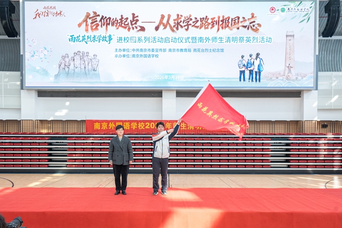 春晖三月,万物竞发。3月28日上午,“雨花思政·我是信仰传承人”——“雨花英烈求学故事”进校园系列活动启动仪式暨南外师生清明祭英烈活动在南京外国语学校(南部新城校区)举行。本次活动由中共南京市委宣传部、南京市教育局、雨花台烈士纪念馆主办,南京外国语学校承办。
