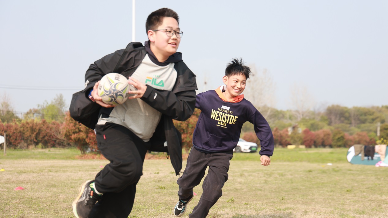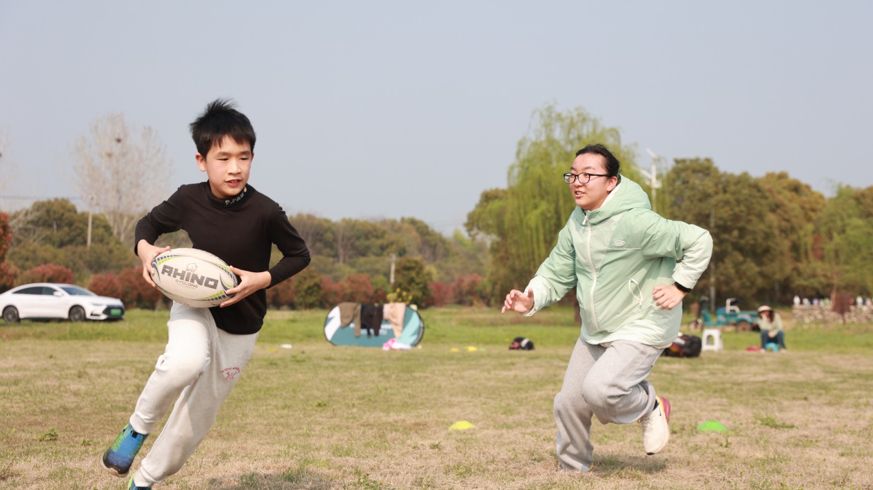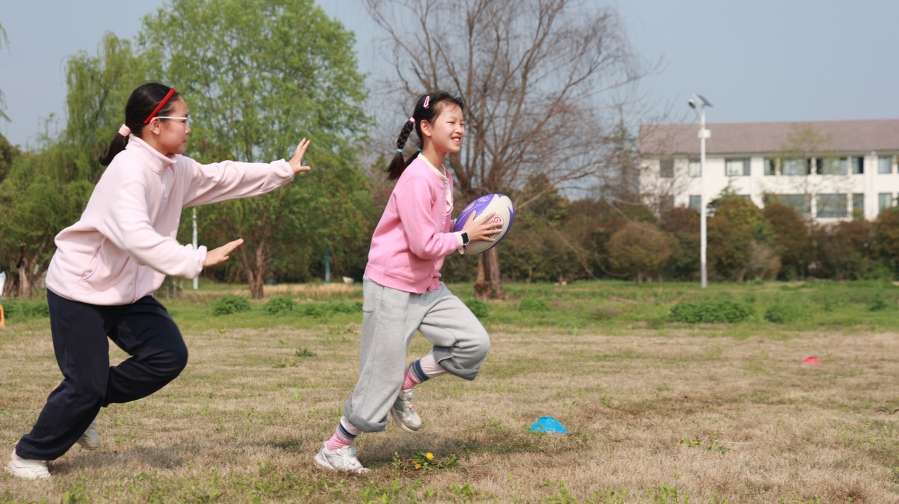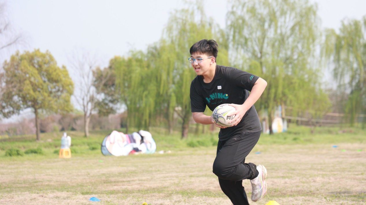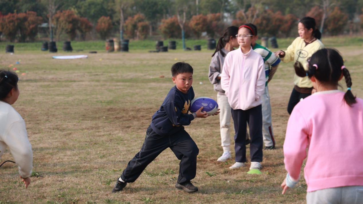 在教练的专业指导下,初次体验触式橄榄球的魅力。从学习规则到传接配合,再到分组对抗,绿茵场上奔跑的身影、默契的呼喊、为团队拼搏的汗水,不仅锻炼了体魄,更让“规则意识”与“团队精神”从概念化为真切体会。