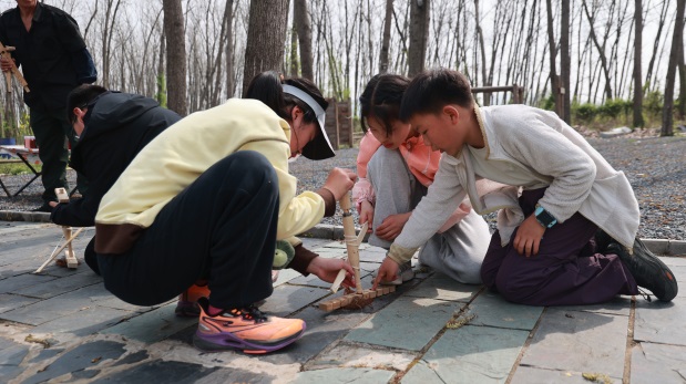 在天安四季户外露营基地,课程转向了与自然的深度对话。如何正确使用指南针快速找准方向,如何通过观察树木长势、枝叶疏密判断方位,如何结合太阳位置与光影变化辨别南北,孩子们在导师带领下,将这些野外生存知识化为实地探索任务。最令他们兴奋的,是安全指导下的钻木取火体验。当缕缕青烟从手中木钻下升起,兴奋的笑容里,不仅是对古老智慧的惊叹,更是对自然法则的敬畏与安全意识的树立。