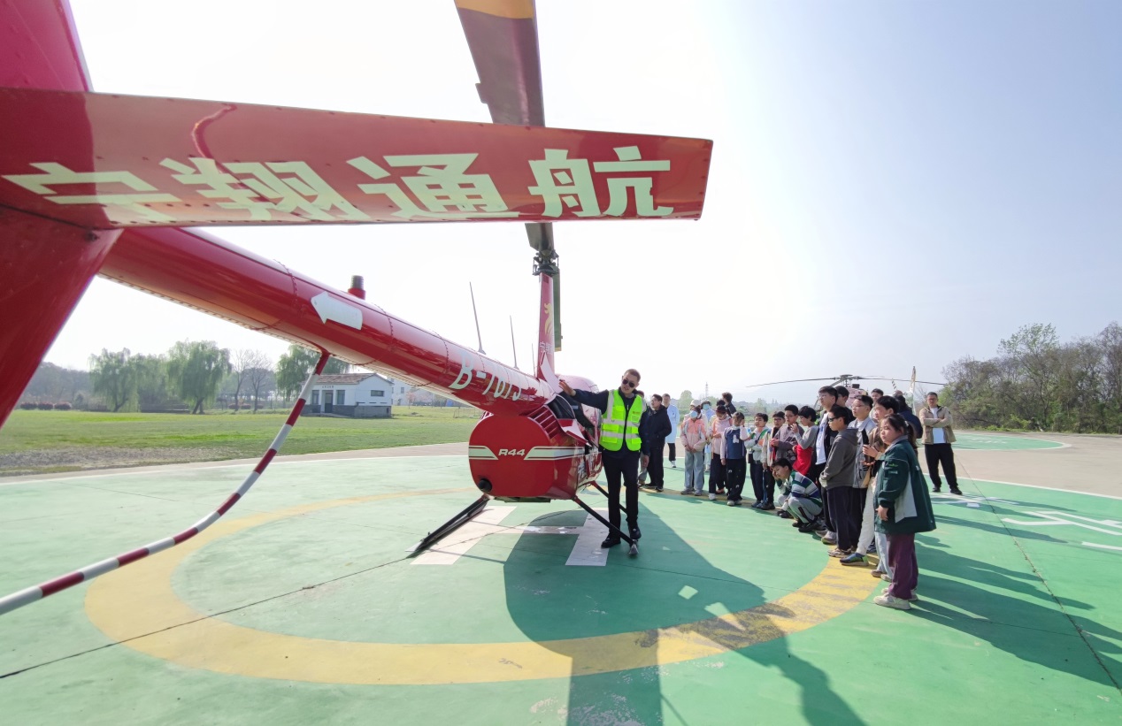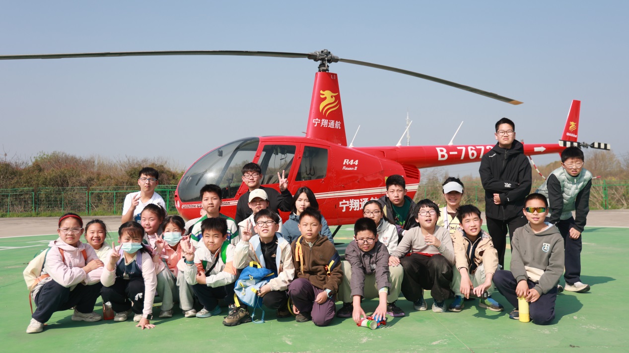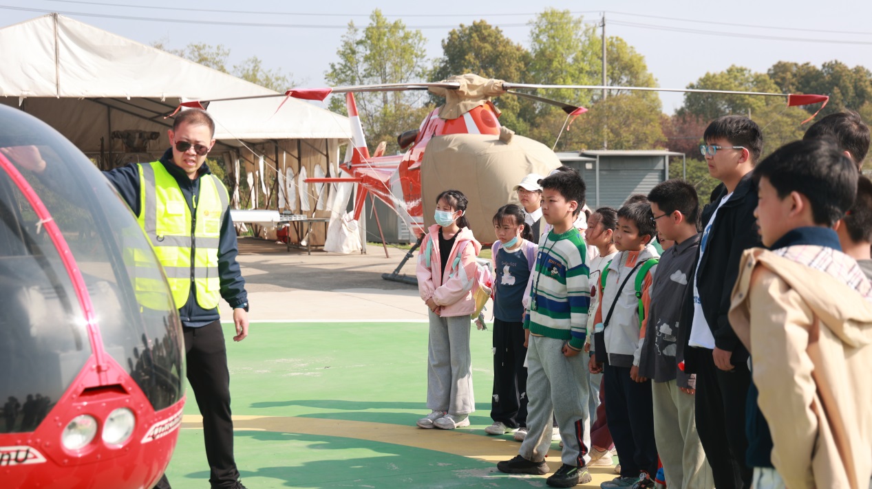 在宁翔航空飞行基地,好奇的惊叹此起彼伏。研学营第二日,孩子们围在直升机旁,近距离观察直升机。在专业讲师的介绍下,认识主旋翼、尾桨、发动机等核心部件,弄清了直升机垂直起降、空中悬停的奥秘,还了解到直升机在救援、观光、农林作业等多个领域的应用。一个个好奇的问题接连提出,一双双眼睛充满求知的光芒,仰望蓝天,一颗颗关于航空探索的种子在孩子们心中悄然生根。