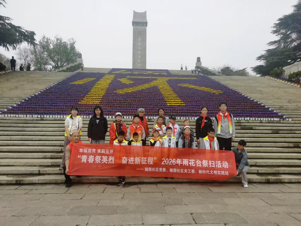 为传承红色基因,厚植家国情怀,凝聚多民族社区力量,4月2日,建邺区南苑街道健园社区组织辖区党员、青少年及家庭代表开展“青春祭英烈·奋进新征程”2026年雨花台烈士祭扫活动,来自汉族、回族、维吾尔族等多个民族的20余名参与者齐聚雨花台烈士陵园,共同缅怀革命先烈,传承英烈精神,铸牢中华民族共同体意识。
