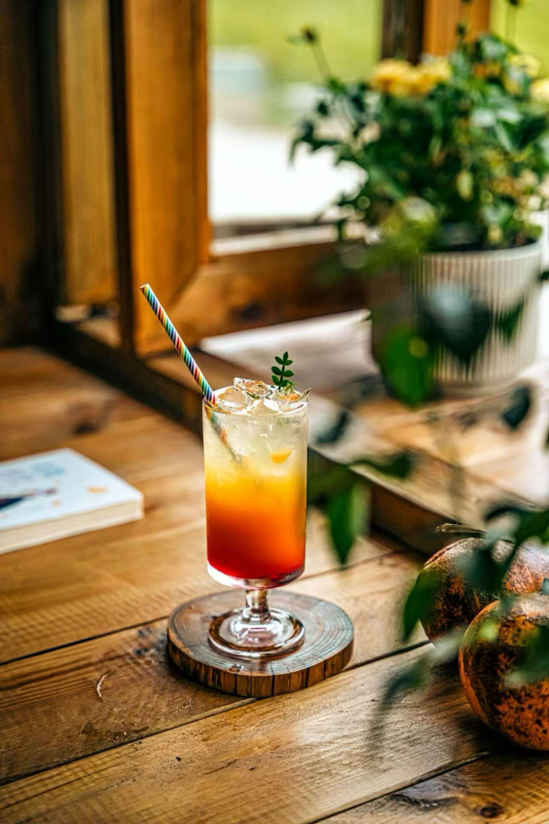 田间小池咖啡,稻香拿铁伴落日特调,临窗尽览花海。