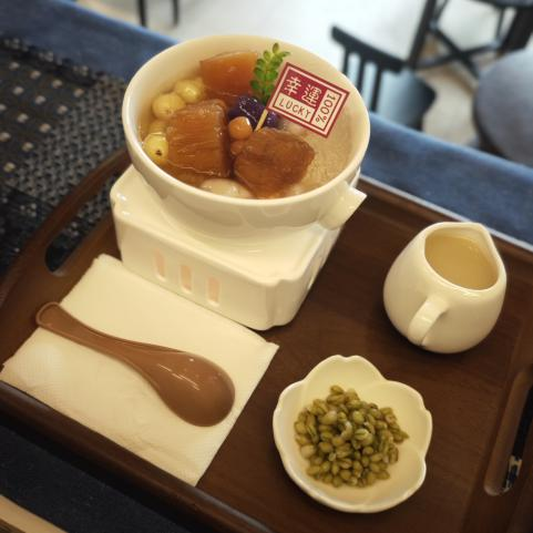 温润治愈小铺,福慧圆满糖水火锅食材丰富多样,云南皂角米搭配手工红糖木薯,温润又滋养。手工轻体酸奶酪清爽绵密,清甜无负担,是逛游渔村时的能量补给站。