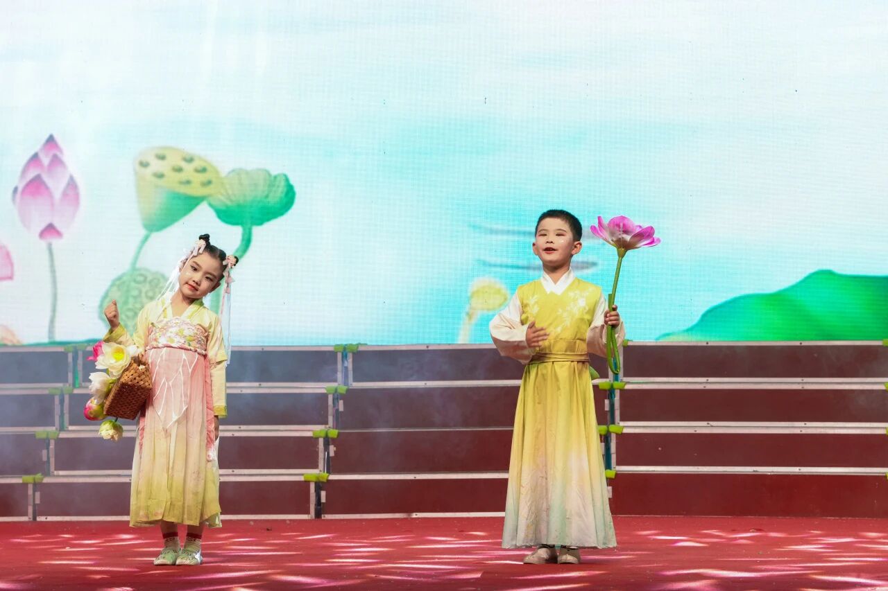 孩子们宛如含苞待放的花蕾,在舞台上尽情绽放童真与活力,灵动的舞姿、甜美的歌声,生动再现了“江南可采莲,莲叶何田田”的经典意境,也让人们看到中华优秀传统文化在祖国幼苗心中生根发芽、茁壮成长。