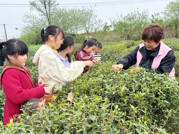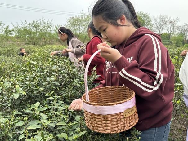 清晨的茶园薄雾缭绕,一垄垄茶树郁郁葱葱。在茶农的指导下,孩子们系上小竹篓,与家长一同化身“采茶工”。“采茶要选‘一芽一叶’,用指尖轻轻提摘,不能用指甲掐……”茶农边示范边讲解,孩子们踮着脚、睁大眼,在茶树间寻找嫩绿的芽尖。家长们则耐心协助,不时提醒孩子注意采摘技巧。欢声笑语中,竹篓里渐渐堆满了翠绿的茶芽,空气中弥漫着清新的茶香。
