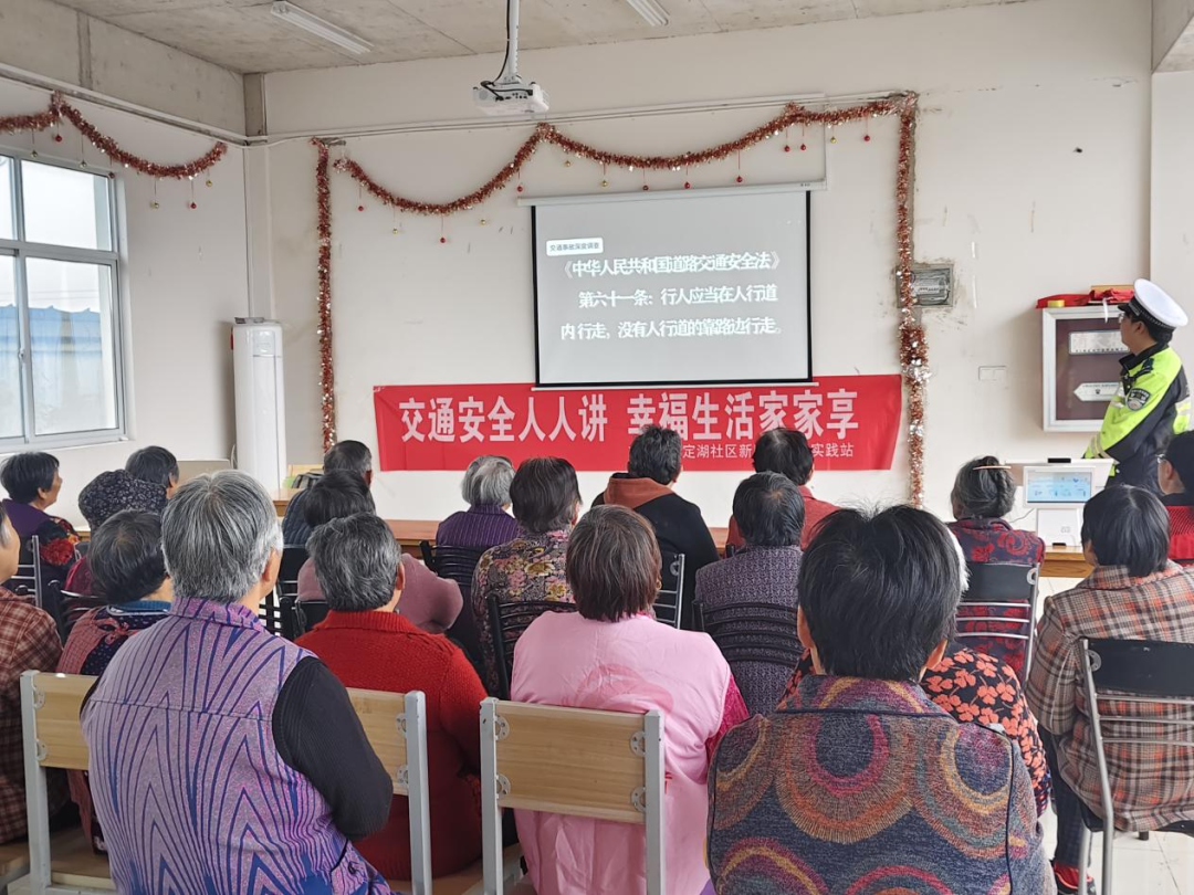 定湖社区面向老年群体开展“观事故知危险,守规则保平安”警示活动。活动通过播放交通事故监控视频,直观展现横穿马路、不戴头盔、忽视车辆盲区等陋习引发的危险场景。交警结合视频逐一剖析原因,用接地气的语言提醒老年人注意出行细节,并发放宣传单向老人普及安全知识与求助方式。