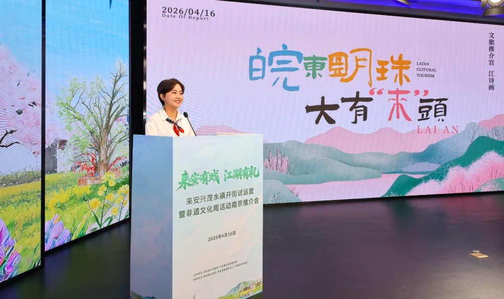 推介会上,文旅推荐官江诗画对来安的文旅资源和旅游线路做了整体介绍;自媒体达人“杨子在滁州”则推介了“来安有戏 江湖有礼”来安兴茂水镇开街试运营暨非遗文化周活动。两轮精彩推介,充分展示了来安县的文旅新成果、非遗新魅力。
