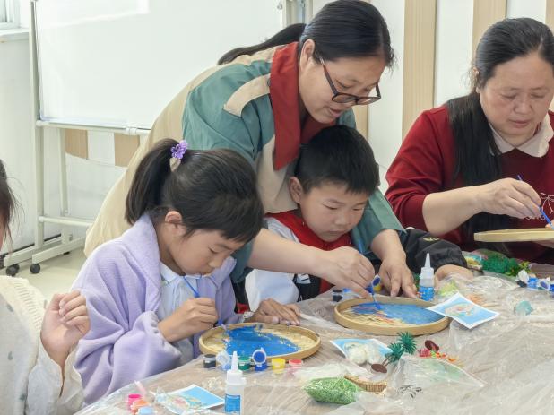 活动现场,志愿者为孩子们详细讲解谷雨节气的由来、气候特点与传统习俗,科普“雨生百谷”的农耕常识、谷雨饮茶、赏牡丹等民俗文化,让大家在趣味讲解中了解节气背后的文化内涵。随后进入手工制作环节,孩子们在志愿者的指导下,拿起苔藓、小绿植、装饰配件等材料,发挥奇思妙想,小心翼翼地在竹盘上搭配、创作,精心制作专属竹盘苔藓画。最后,志愿者向孩子们发放了风筝,期盼着孩子们像春日的风筝一样,朝气蓬勃、自由成长。