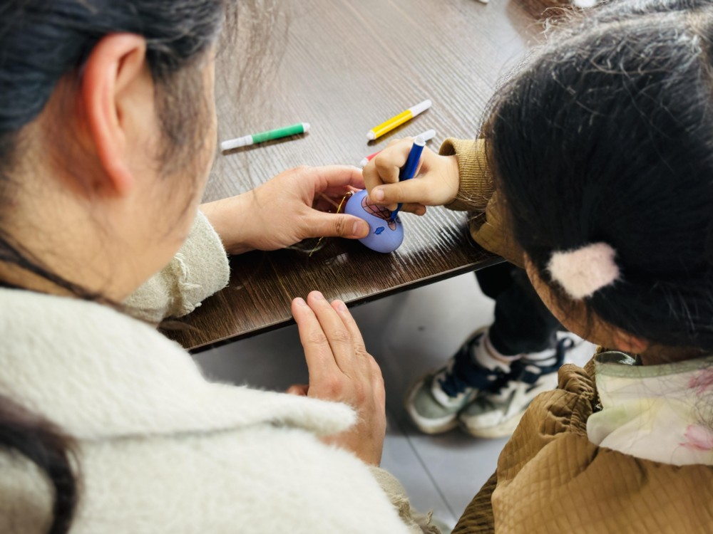 随后的“彩蛋涂鸦”手工环节,孩子们拿起画笔,在动物、植物造型的蛋模上尽情涂鸦——有的画上憨态可掬的小熊猫,有的涂出鲜艳的向日葵,还有的描绘出挺拔的小松树。不一会儿,一个个充满童趣的动植物彩蛋作品便诞生了。涂鸦完成后,孩子们轮流上台,手持自己的彩蛋模型,即兴讲述小故事:有的以“小兔子的森林奇遇”为题,有的编了“花朵与蝴蝶的友谊”,还有的分享“小树苗成长记”。稚嫩的声音、奇妙的想象,赢得现场阵阵掌声。