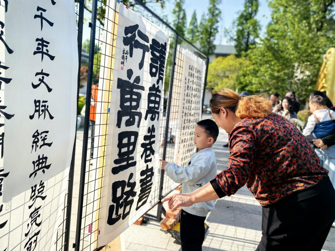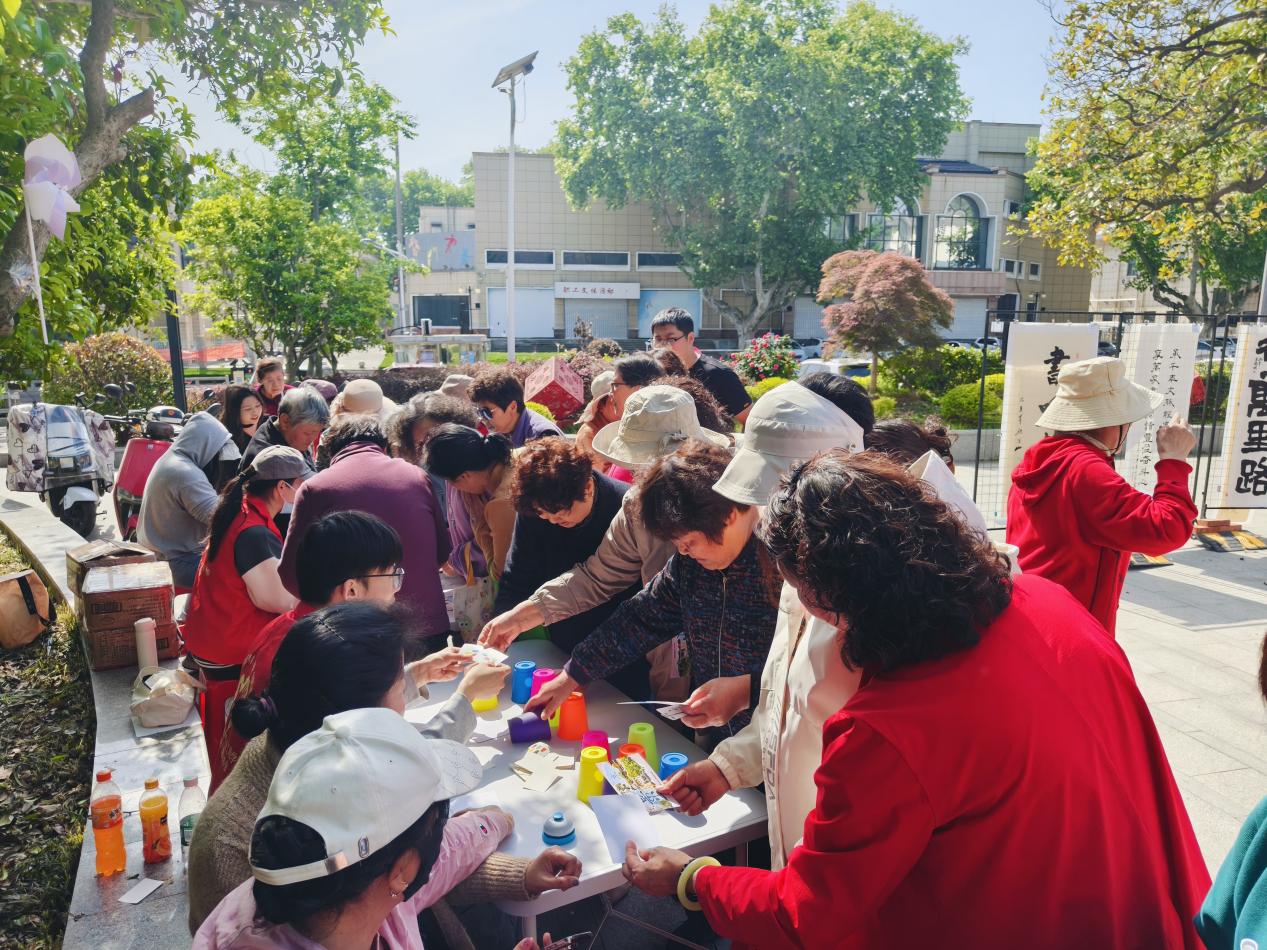 舞台之外,社区还设置了互动体验区和书法作品展示区。诗词接龙、书名竞猜等趣味游戏吸引众多居民驻足参与,大家在欢声笑语中感受文字的魅力。一旁的“传承经典·共享阅读”书法作品展同步开展,展出的作品均出自辖区居民之手,一幅幅或遒劲或婉约的笔墨,生动诠释着群众从文化享受者向文化创造者的转变。活动还邀请辖区爱心企业现场设点,精选图书供居民惠购,让书香从舞台延伸至身边。