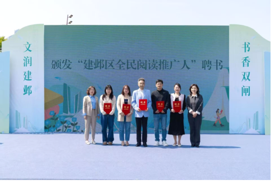 活动现场春风煦暖、书香氤氲。童声朗诵《留在帕米尔高原的家书》真挚动人,传递家国情怀;亲子诵读《袁枚诗词里的童趣》朗朗上口,尽显传统诗文魅力;赠书环节传递知识与温暖,为阅读之路点亮明灯。现场还颁发 “建邺区全民阅读推广人” 聘书,邀请书香家庭分享阅读故事,以榜样力量带动更多家庭涵养书香家风。